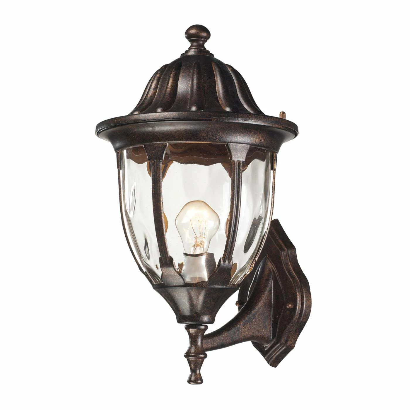 Vintage elegance radiates from the ELK Lighting Glendale 45001/1 1-Light Outdoor Wall Sconce. Durably built of metal, this stylish wall sconce features a regal black finish that is complemented by clear glass shades. Requires one 100-watt medium base bulb (not included).