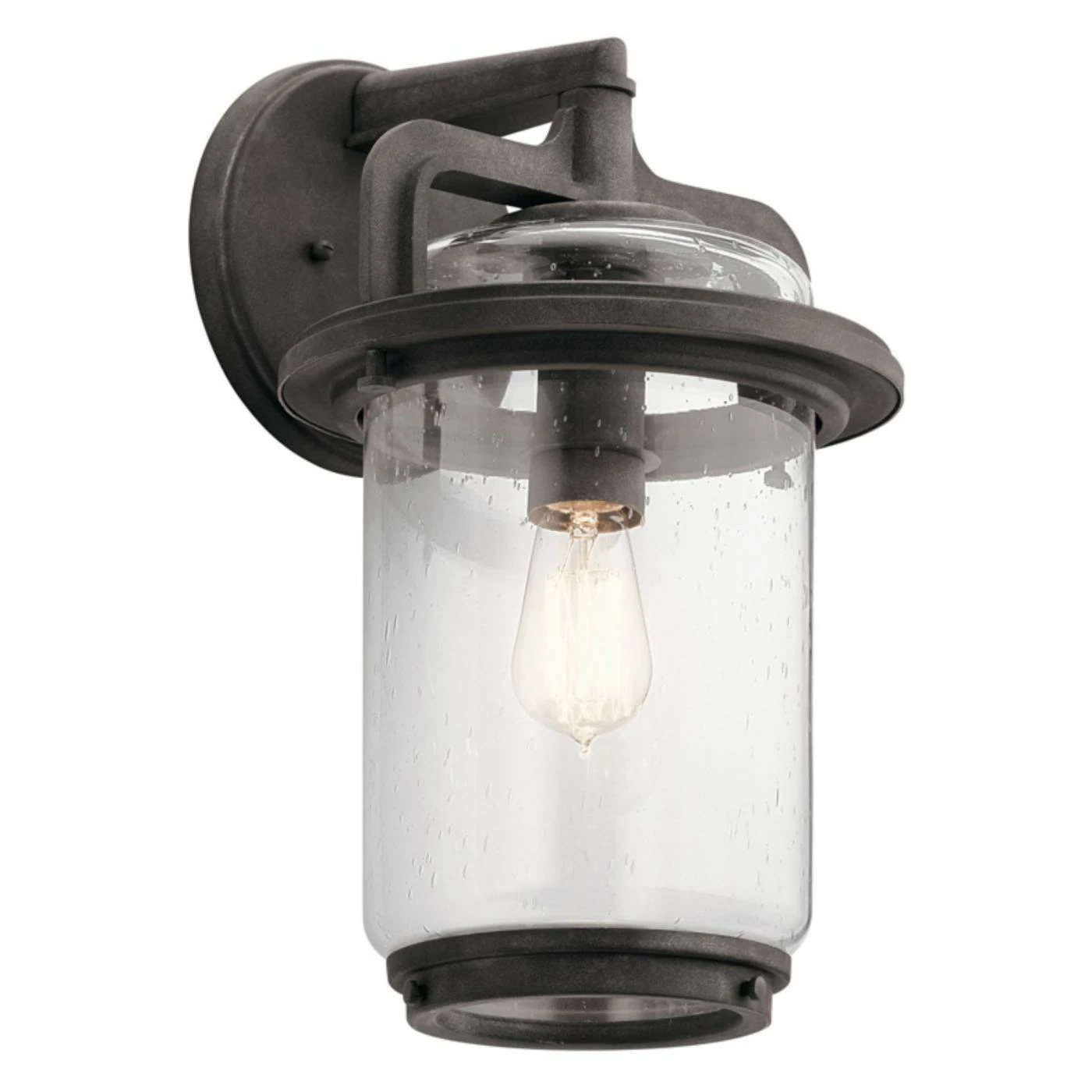 Make the outside of your home reflect your love for industrial style by flanking your entryway or garage with the Kichler Andover Outdoor Wall Light. This wall sconce features a seeded glass shade inside a durable metal housing.
