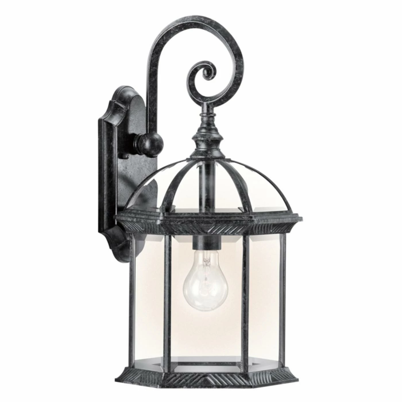 Add style and elegance to your front porch, patio, gardens and entry ways with the Kichler Barrise 49186 Outdoor Wall Lantern – 9.625 in. It has a bird cage design, with clear beveled glass panels on the sides and on the dome for maximum lighting. This traditional lantern hangs from a curved arm that is attached to a wall bracket. Solidly built, this lantern requires one 100W A19 bulb (not included).