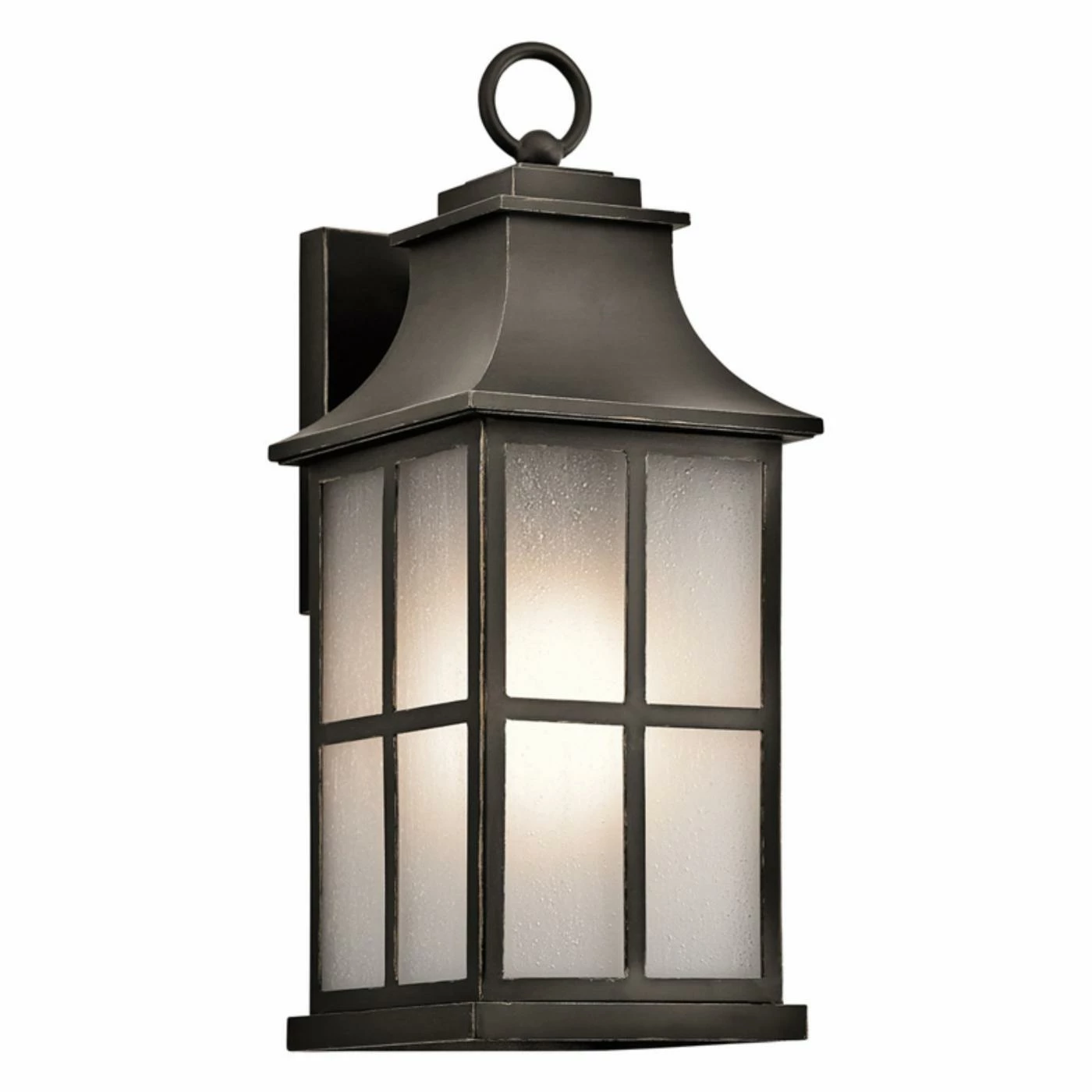 Welcome guests in a stately way with the Kichler Pallerton Way 49580OZ Outdoor Wall Light. This classic outdoor lantern light features an olde bronze finish and premium glass panels with window pane overlays. It requires one 100-watt bulb, not included.