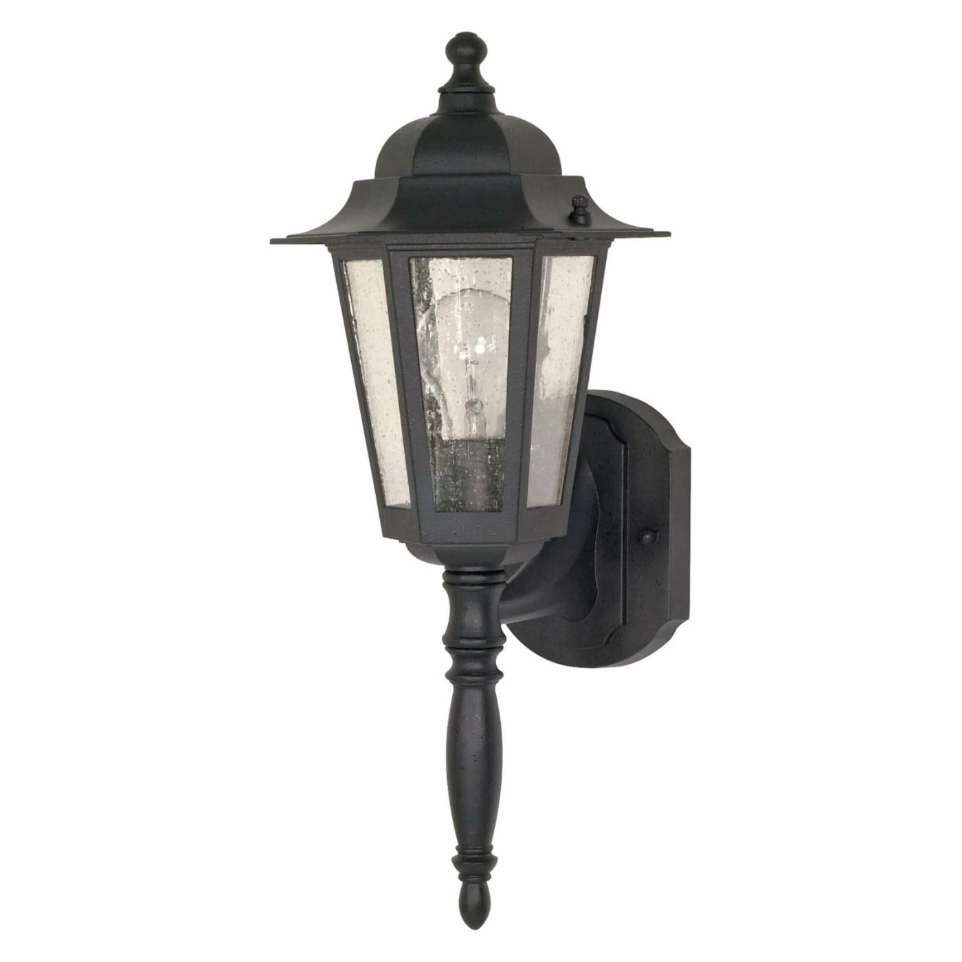 The Nuvo Cornerstone 18 in. Wall Lantern is a one-bulb fixture that boasts a traditional-style frame enhanced with seeded glass. Plus it has a discreet rear wall mount, which accentuates the lantern effect. This light will bring timeless style to your home thanks to its versatile transitional design.