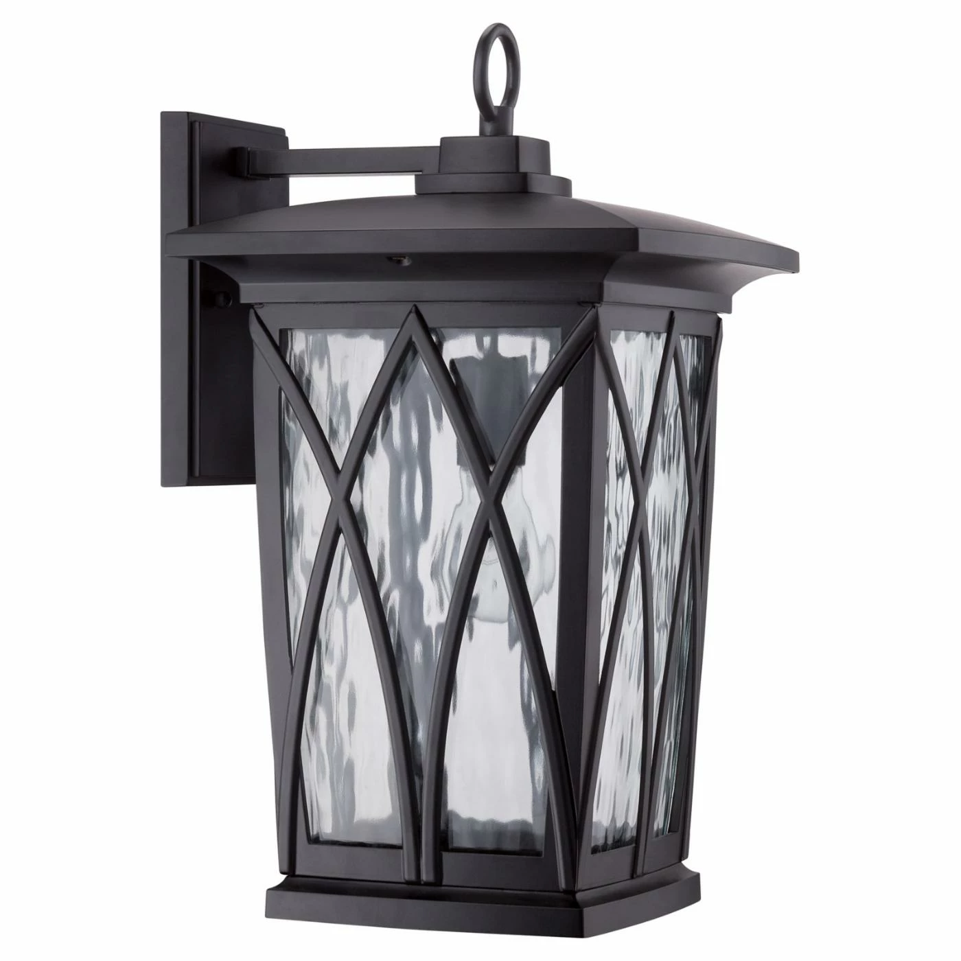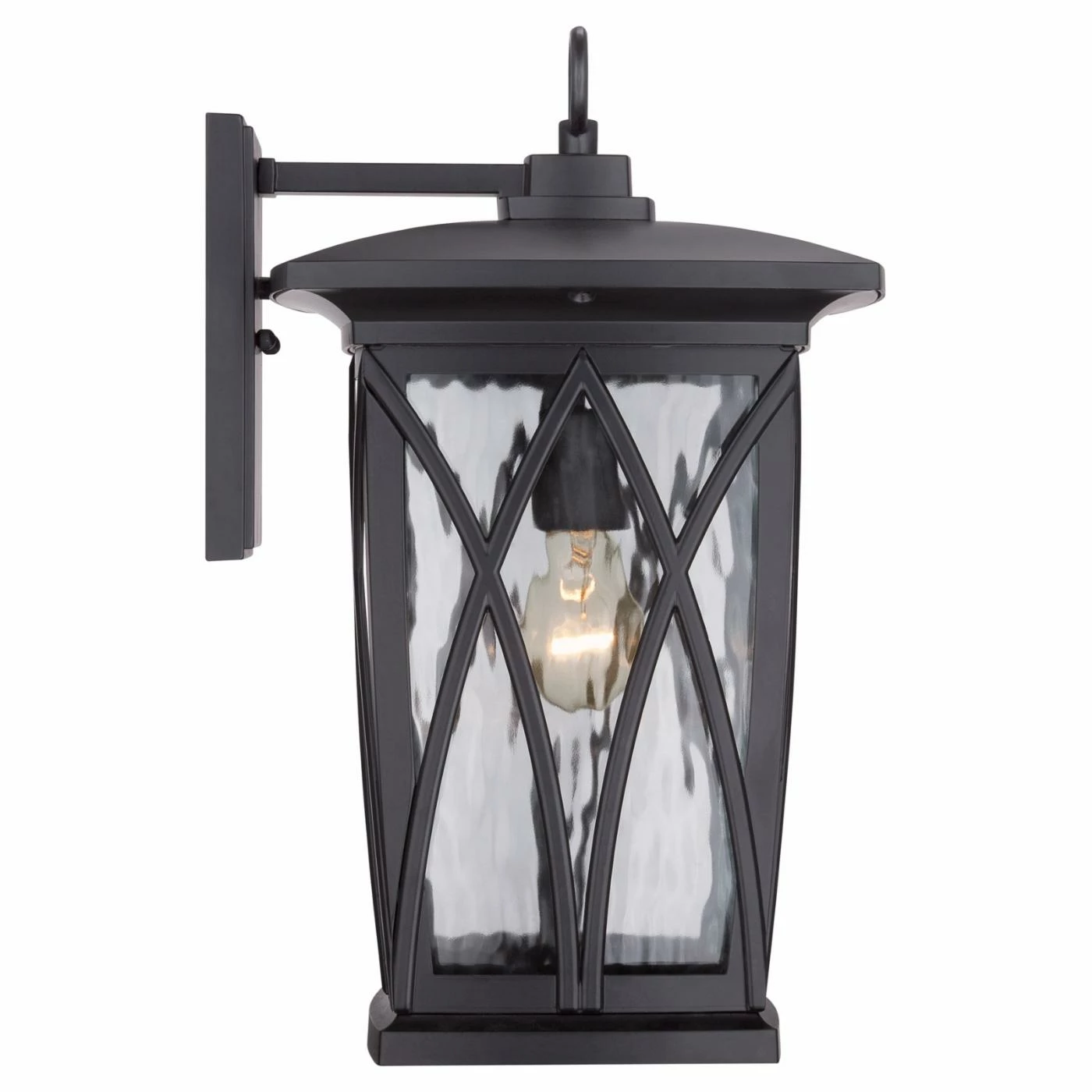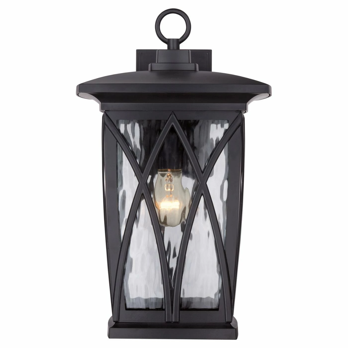 With its classic lantern shape, curved X overlays, and clear water glass panels, the Quoizel Grover GVR8410K Outdoor Wall Lantern is sure to upgrade your curb appeal. This outdoor lantern includes a vintage style bulb.