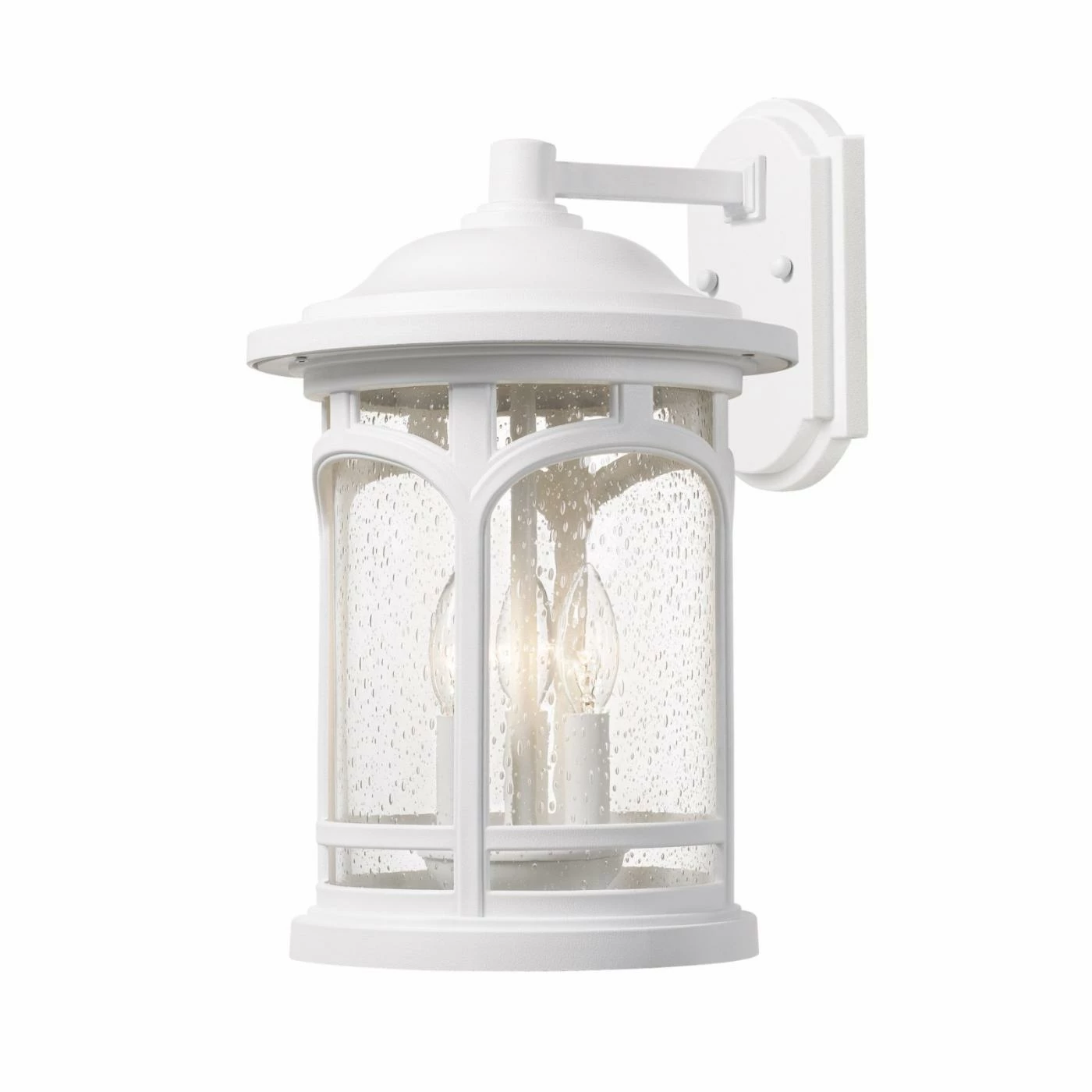 Built from weather-resistant coastal armour, the Quoizel Marblehead MBH840 Outdoor Wall Lantern is designed to withstand outdoor environments. The arched metal lantern frame and base plate are finished in bright fresco for a craftsman style effect. This wall lantern requires three 60-watt B10 candelabra base bulbs (not included) for gentle illumination of your garden or walkway.