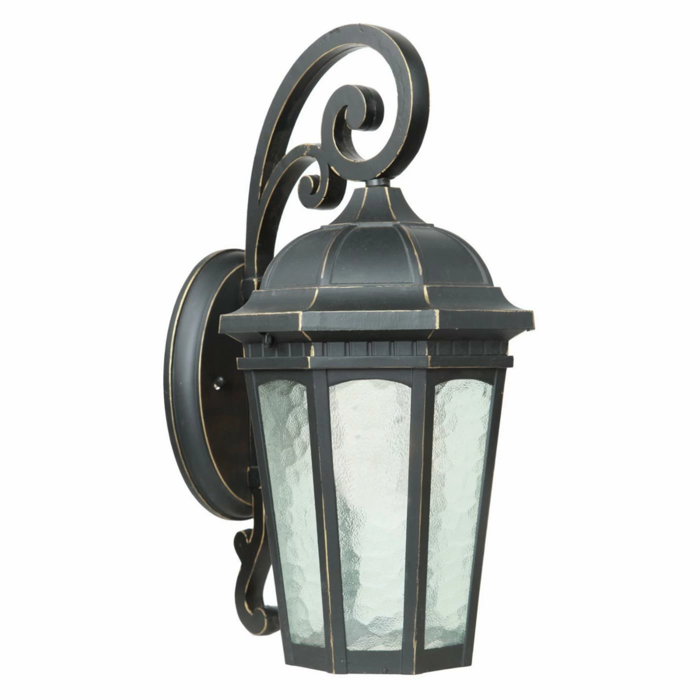Perfect for adding curb appeal, the Yosemite Home Decor Minarets Lake FL1618 Fluorescent Outdoor Wall Sconce features a gracious, scrolled top, dentil moldings, and weathered bronze finish. This energy-friendly outdoor wall sconce comes complete with one 13-watt fluorescent bulb.