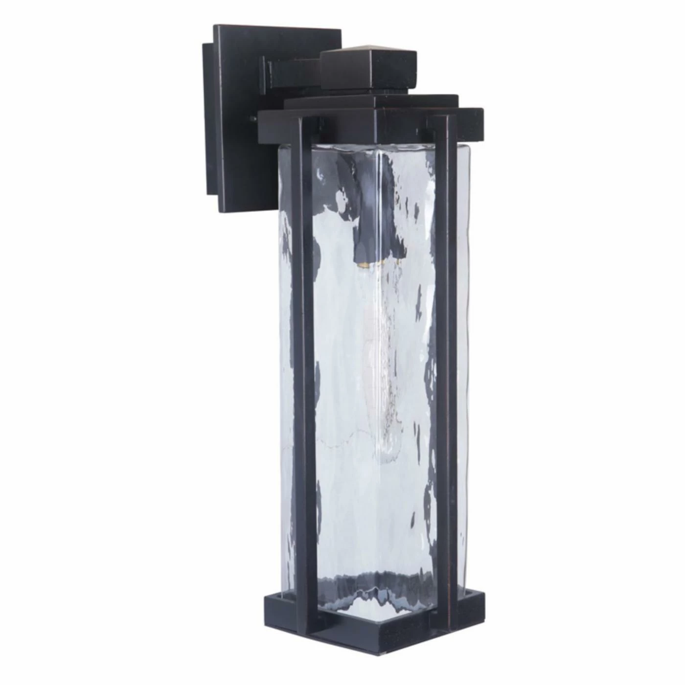 The Craftmade Pyrmont Z2614 Outdoor Wall Light makes a truly contemporary statement for your home’s entryway with an elongated hammered glass shade and modern-designed wall mount and frame. The deep oil-rubbed bronze finish gives this amazing outdoor light a sense of pure sophistication.