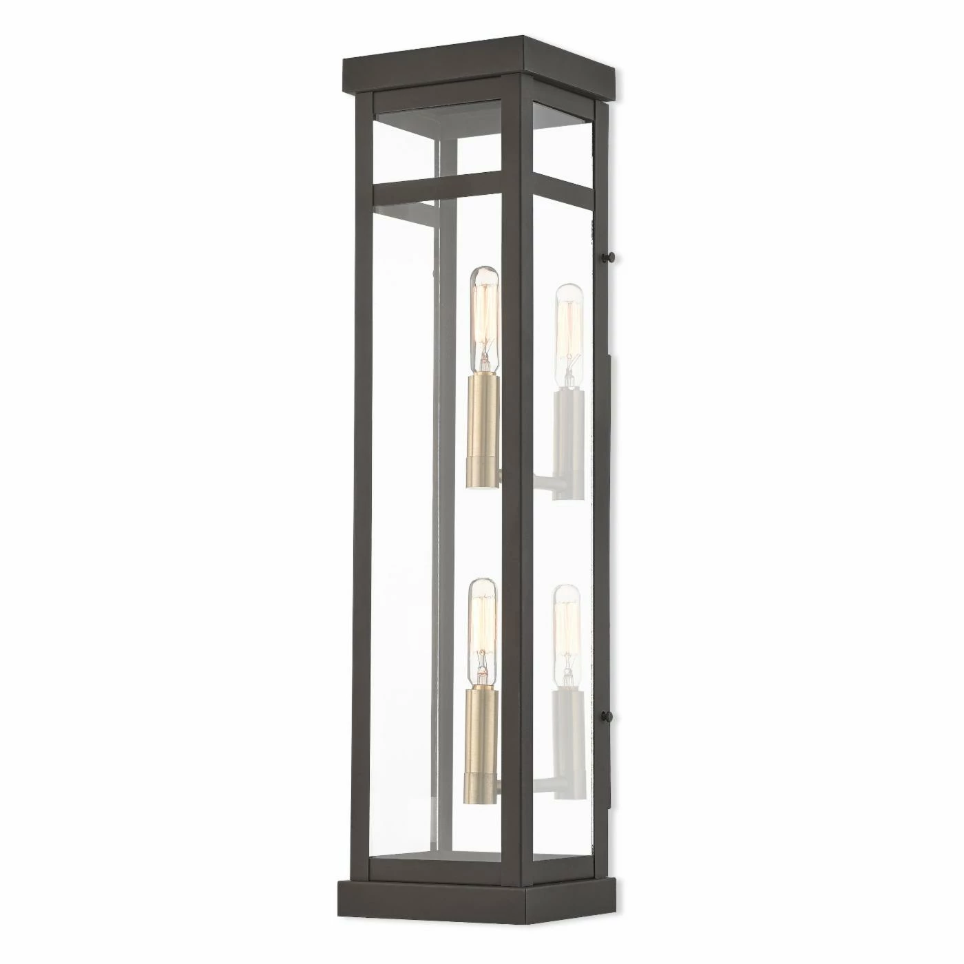 With its chic transitional style, this Livex Lighting Hopewell 2 Light Outdoor Wall Lantern will pair with virtually any design style. Crafted with straight lines and clear glass, this solid brass fixture is designed with longevity in mind. It’s also offered in available finishes for customization.