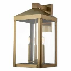 Solid brass construction lends a sturdy touch to this Livex Lighting Nyack 20585 3 Light Outdoor Wall Lantern. Crafted with longevity in mind, this fixture is sure to pair easily with most decorative styles. It’s also rate safe for indoor or outdoor locations for your convenience.