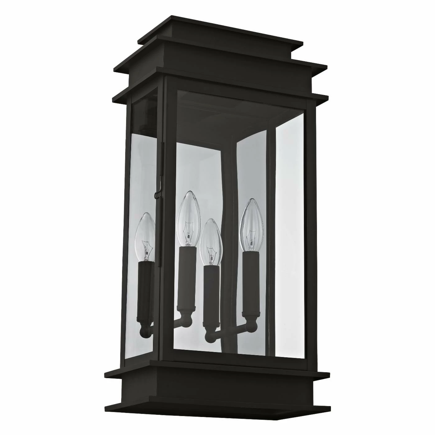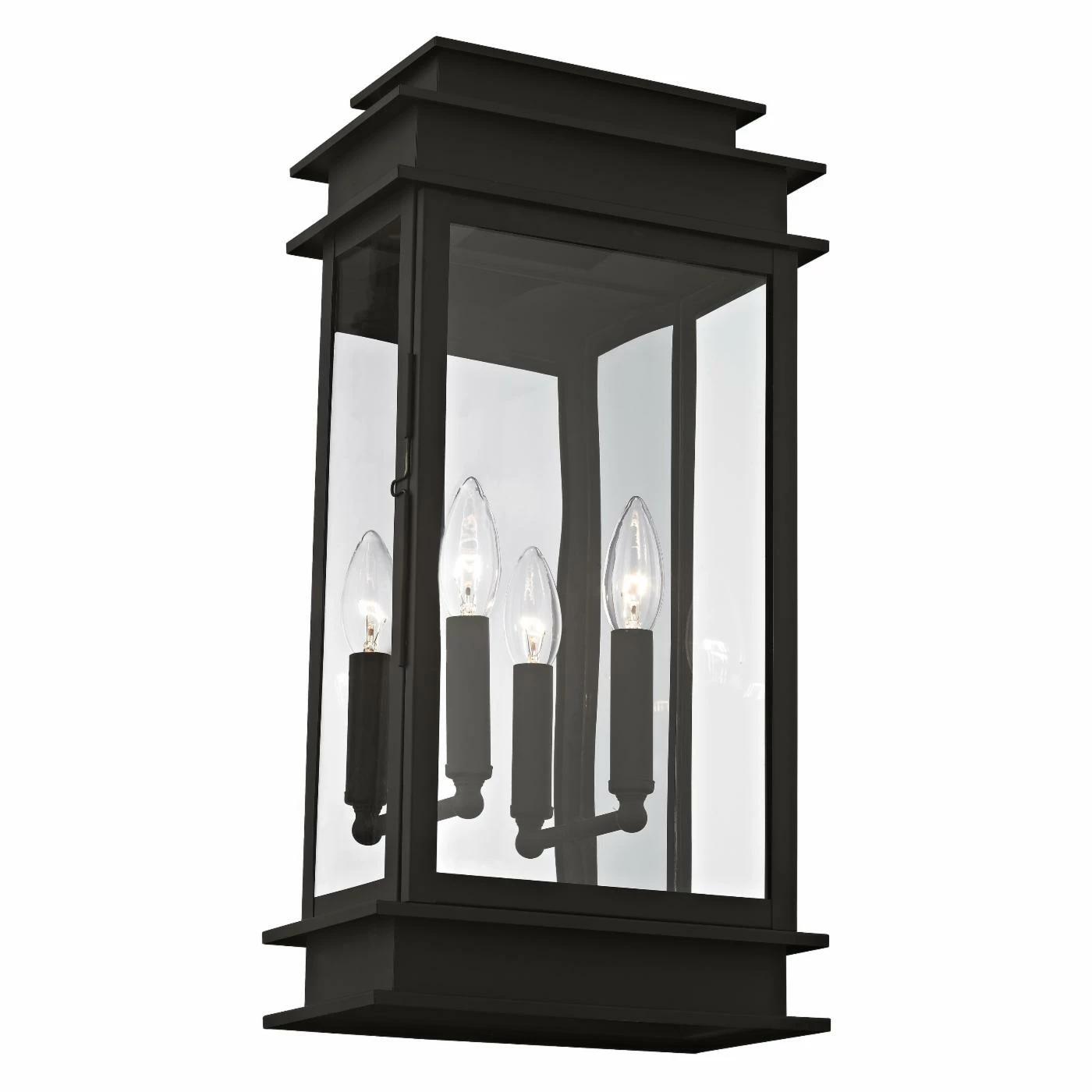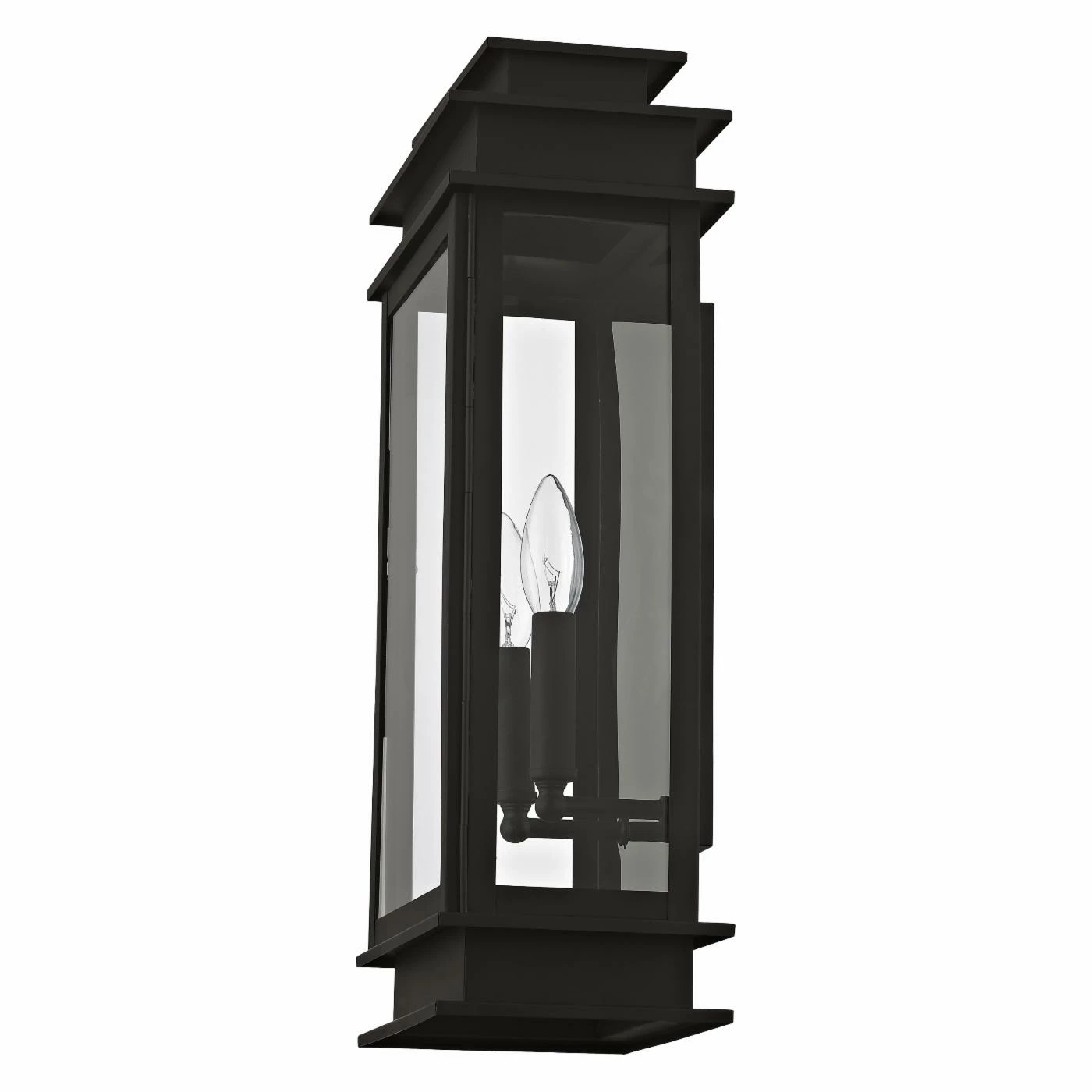 Channel old world charm when you make this Livex Lighting Princeton 2018 Outdoor Wall Lantern part of your home’s outdoor setup. It features a square fixture design, clear glass shade, and is offered in your choice of available finish. This wall lantern requires two 60-watt incandescent bulbs (not included).