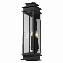 Reminiscent of an old time street lantern, this Livex Lighting Princeton 20207 Outdoor Wall Lantern can stand up to wet conditions and also boasts clear glass that maximizes bulb brightness. It’s great for mounting on the exterior of your home to illuminate your porch or patio. This wall lantern requires one 60-watt incandescent bulb (not included).