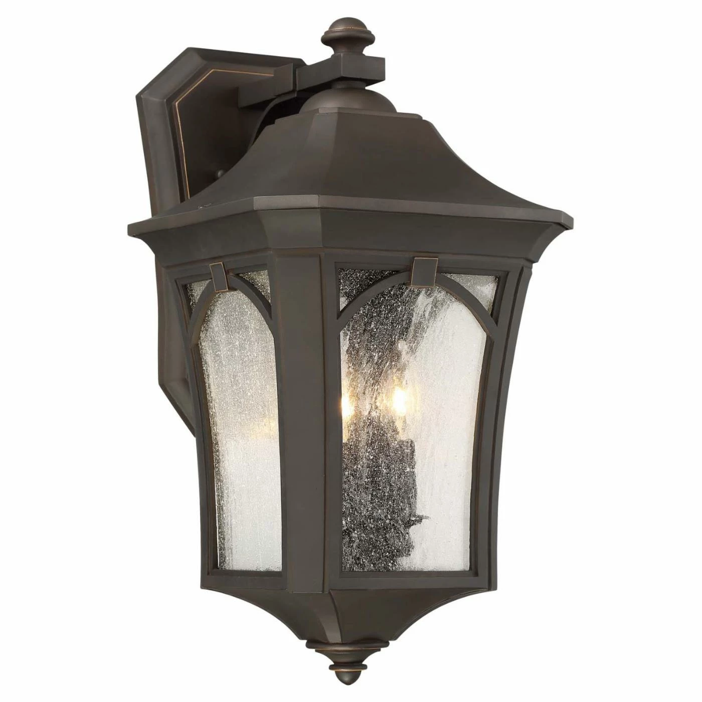Come home to the welcoming glow of the Minka Lavery Solida 7121-143C Outdoor Wall Mount Light. The aged look of the rubbed oil bronze finish and seeded glass inserts make this lantern the ideal finishing touch to your outdoor lighting dΓ©cor. Your choice of available sizes means you can feel confident it’ll fit just right, wherever it’s displayed.