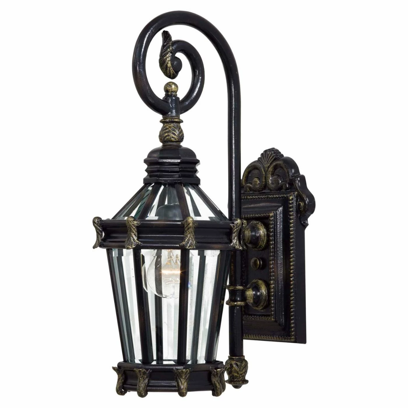 Detailed with a rich heritage finish with golden highlights, the Minka Lavery Stratford Hall 8930-95 Wall Mount Light is sure to complete your traditional style outdoor dΓ©cor. Its clear glass shade features beveled edges that will help cast a warm and inviting glow throughout your driveway, patio, or porch area. Its frame is constructed of highly-durable, sand-cast aluminum that will last for years to come.