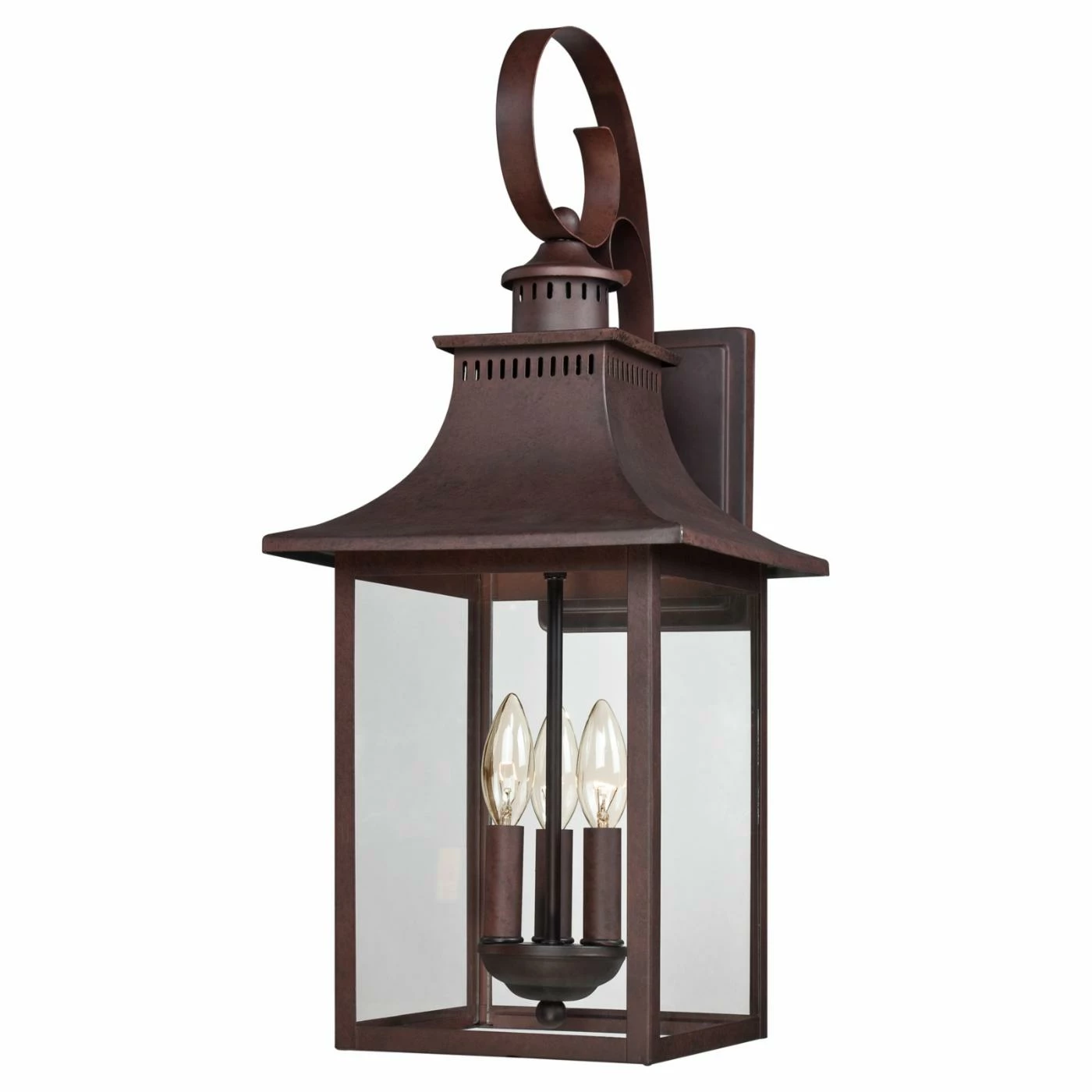 Create stately curb appeal with the Quoizel Chancellor CCR8410CU Outdoor Wall Lantern. This outdoor light was inspired by 19th Century lanterns and features handsome scrolls in a copper bronze finish with clear beveled glass panels. It requires three 60-watt bulbs, not included.