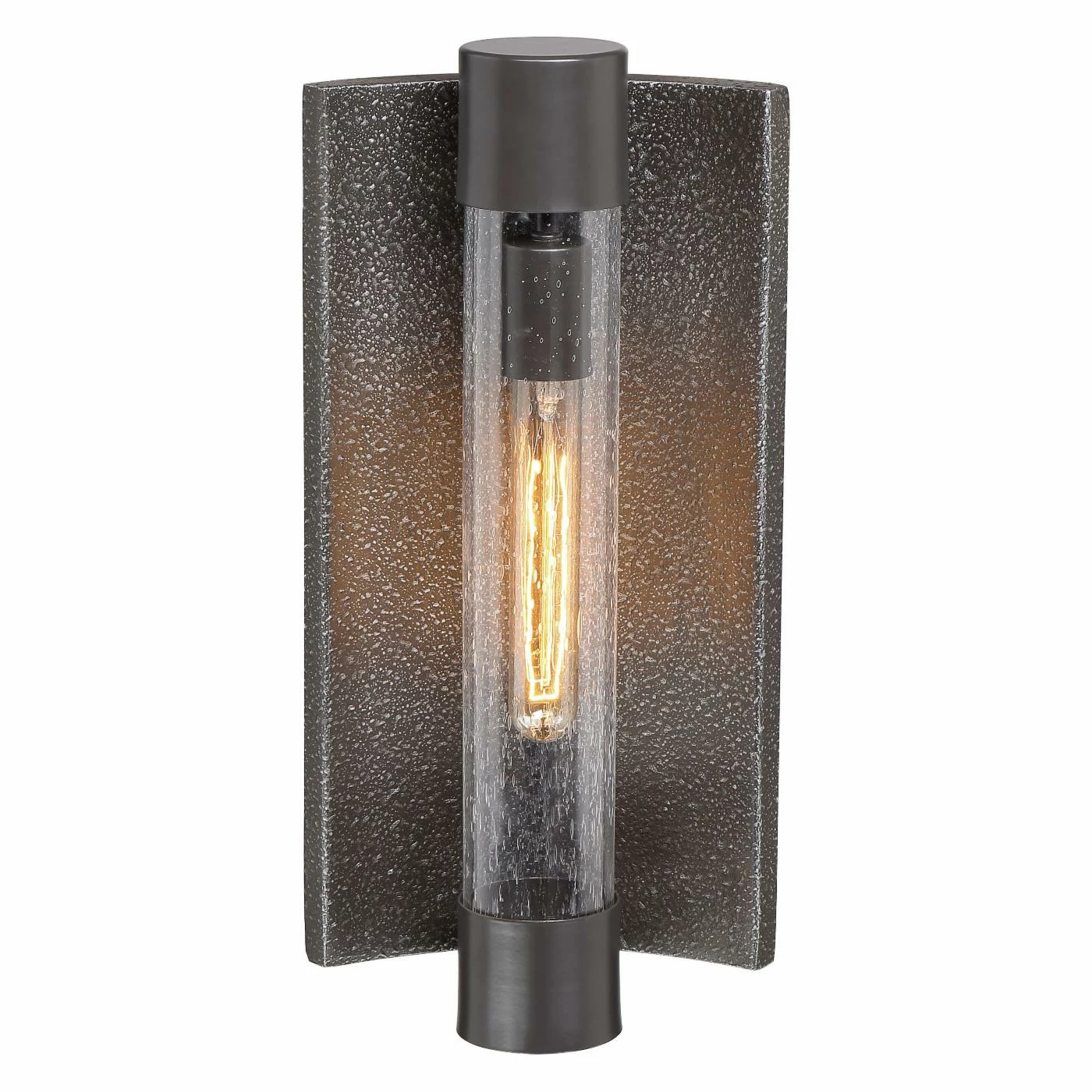 When it’s time to upgrade your space, The Great Outdoors Celtic Shadow 72662-515 Outdoor Wall Light gives you equal doses of light and style. This contemporary design features a single bulb inside a cylindrical shade of seeded glass. The curved back plate has a textured surface that comes alive when you turn it on. Please choose from available size and finish options.