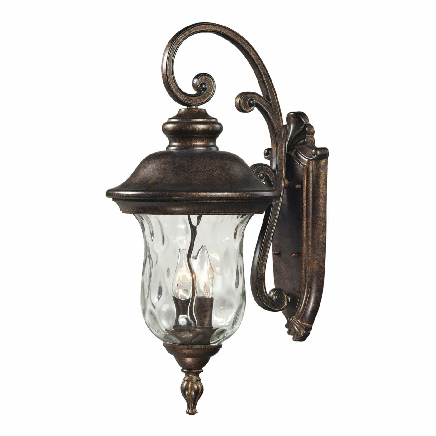 The charming traditional design of the ELK Lighting Lafayette 45022/3 3-Light Outdoor Wall Sconce is sure to create a welcome enhancement to your outdoor dΓ©cor. Requiring three 60-watt candelabra base bulbs (not included), this wall sconce emits a warm glow over your outdoor setting. Complete with a regal bronze finish and a clear glass shade, this wall sconce is sure to please.