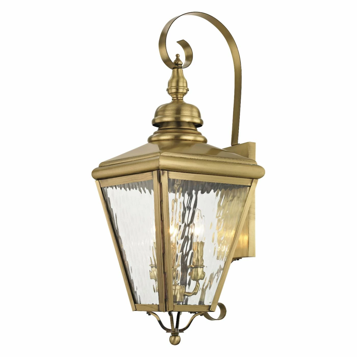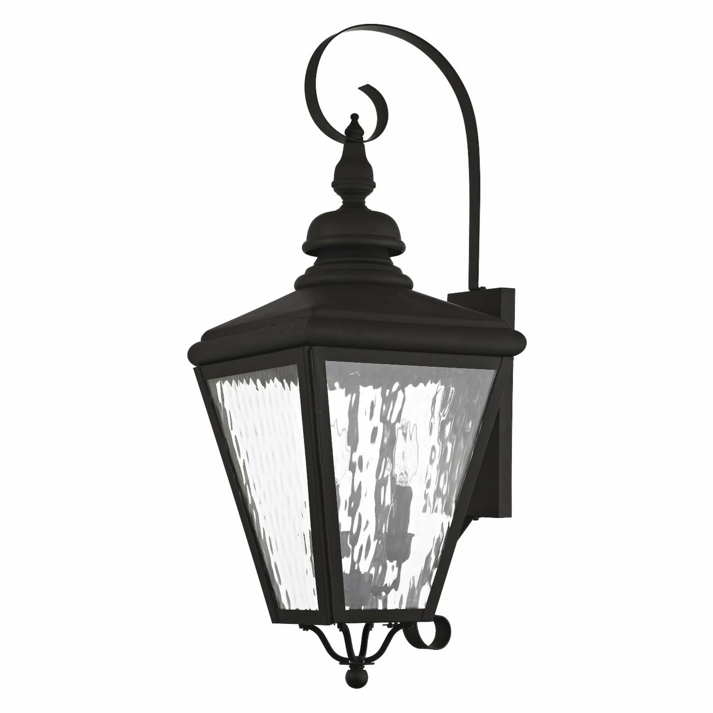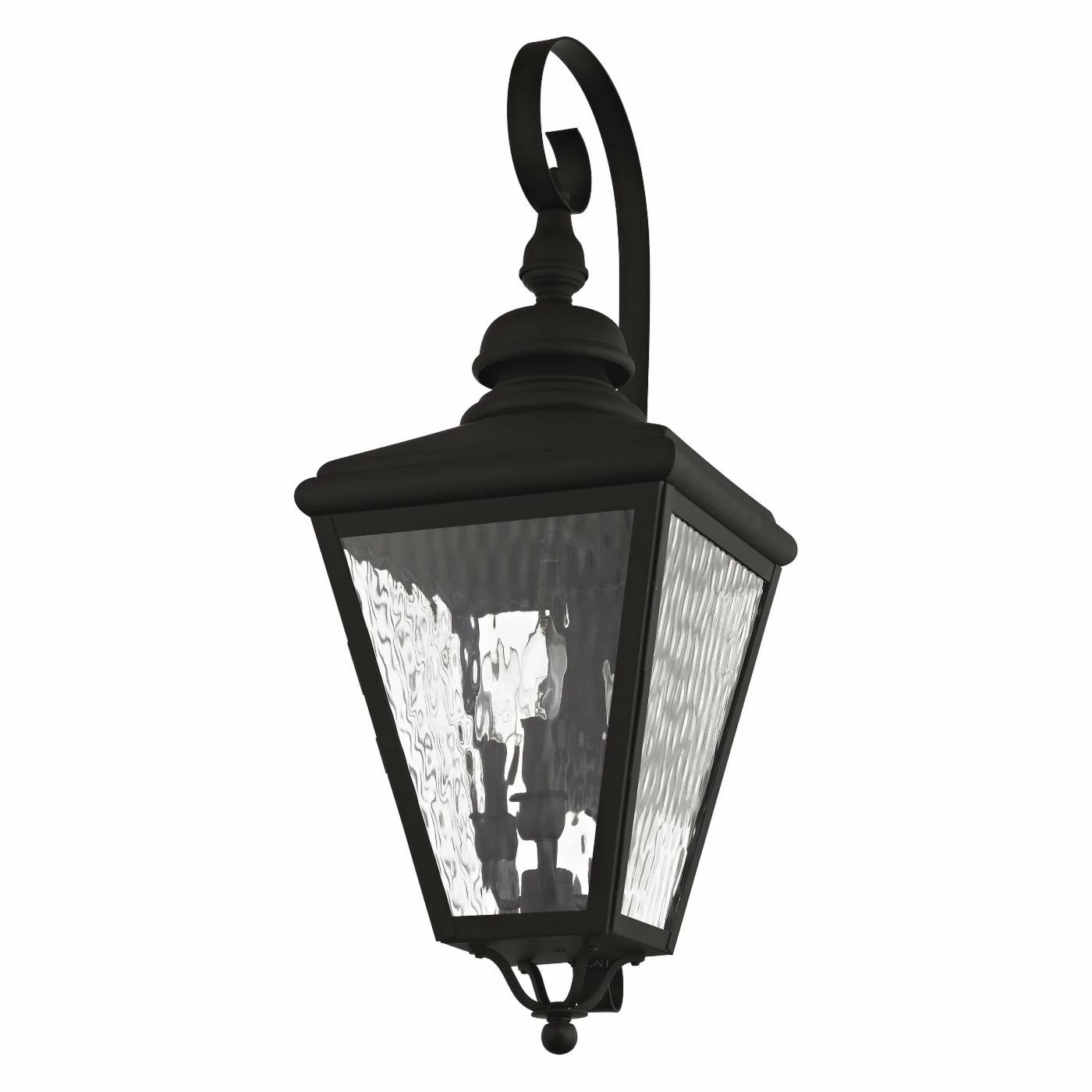The Livex Lighting Cambridge 2033 Outdoor Wall Lantern features three 60-watt bulbs to gently illuminate your home from behind rustic textured glass. The combination of elegant curves and edgy straight lines in the steel framework give it traditional allure. Check the available finishes to find the perfect match for your home.