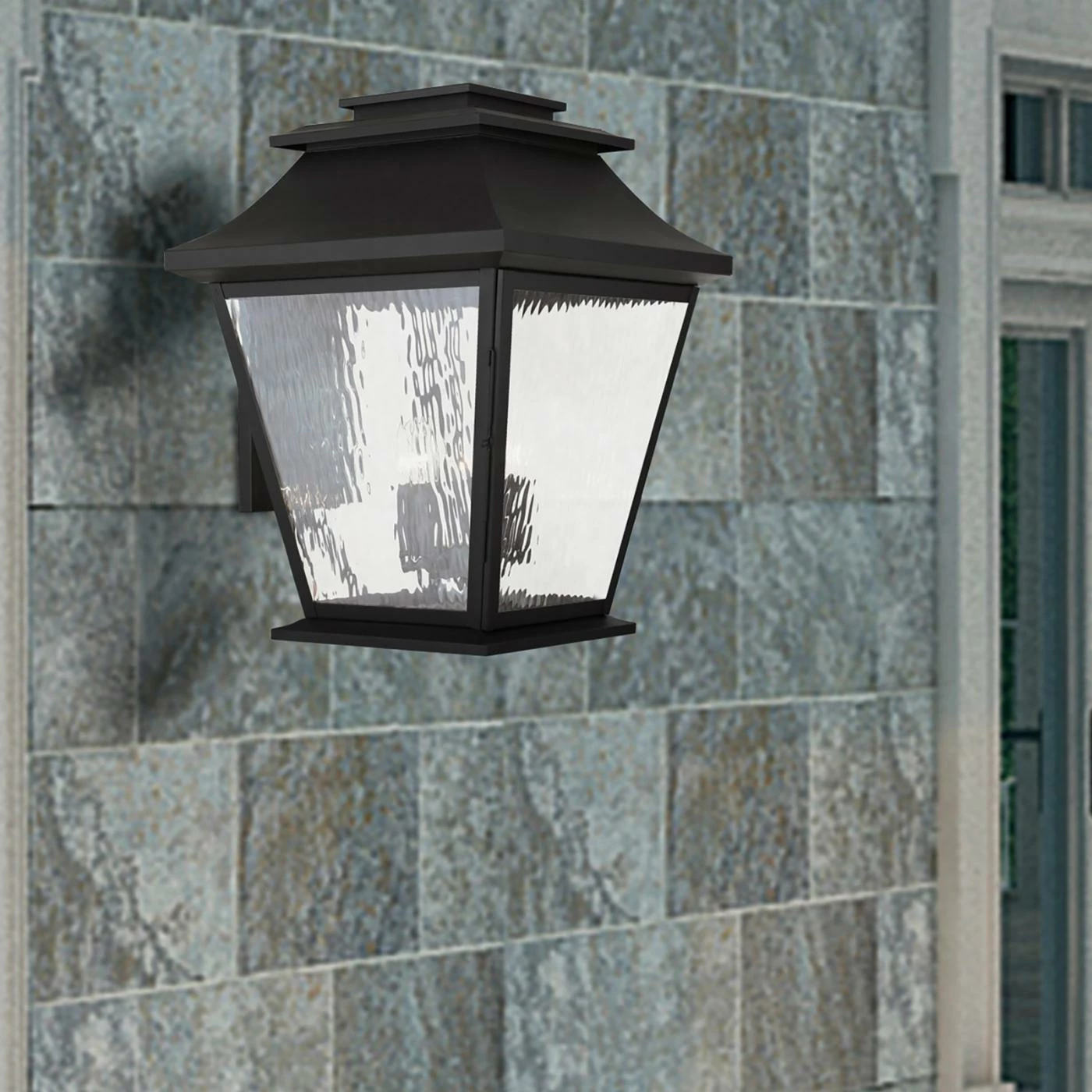 Mount the Livex Lighting Hathaway Outdoor Lantern Wall Light to the wall to light the way for guests to your outdoor space. The durable brass construction has a dark hue for a classic rustic look. The rippled glass facade glistens in the light. You’ll be impressed by the sophisticated, traditional design.