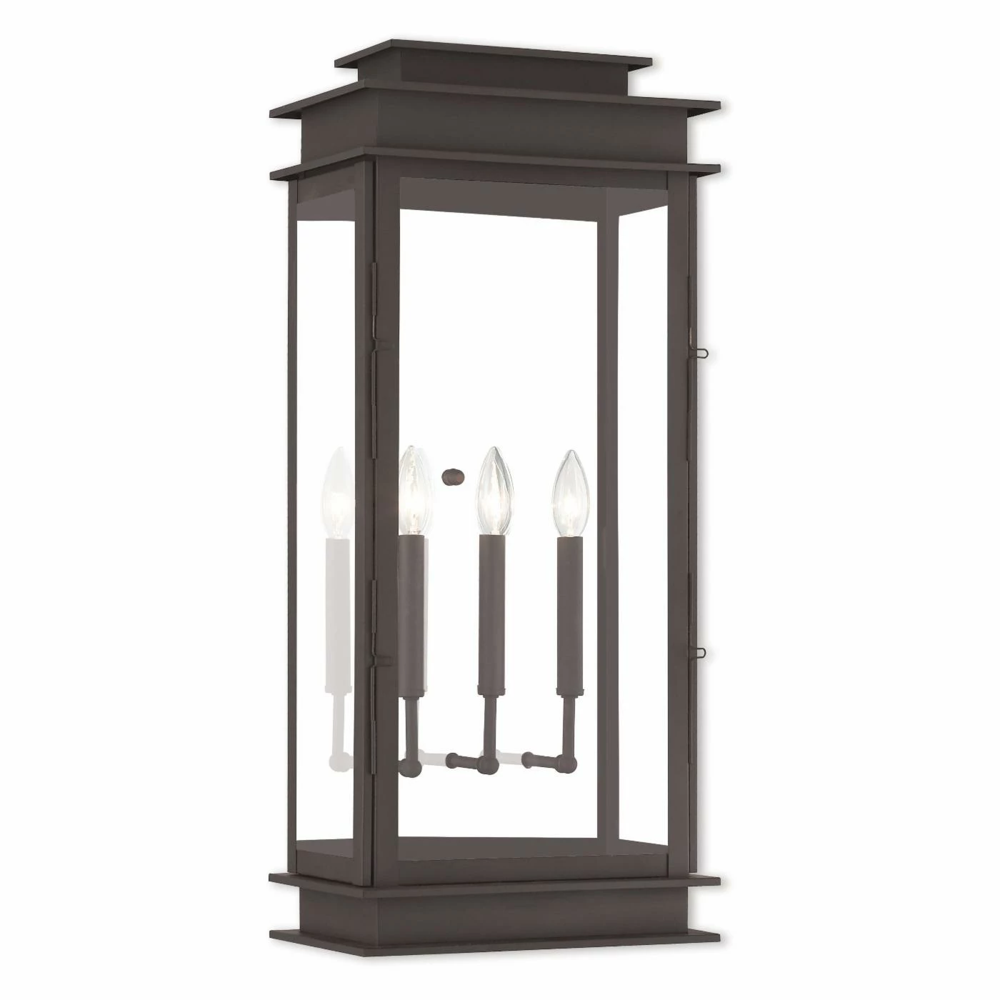 The antique lantern-inspired design of this Livex Lighting Princeton 20208 Outdoor Wall Lantern is not only charming, but it also stands up to wet conditions, making it the perfect addition to your porch. This wall lantern requires three 60-watt incandescent bulbs (not included).