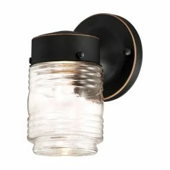 Whether your use it inside or outside, the Design House Jelly Jar Indoor/Outdoor LED Wall Light is a great way to add a rustic touch to your home. The clear glass has ribbed details at the top and bottom. An integrated 6W LED light kit provides a welcoming glow. The LED light is rated for 50,000 hours of use. Safe for use in wet locations, this light can withstand inclement weather. Hang it above your front or garage door for added security at night. In addition to being stylish, the light is also dimmable. Choose from available finish to find the wall light that works best for your home.