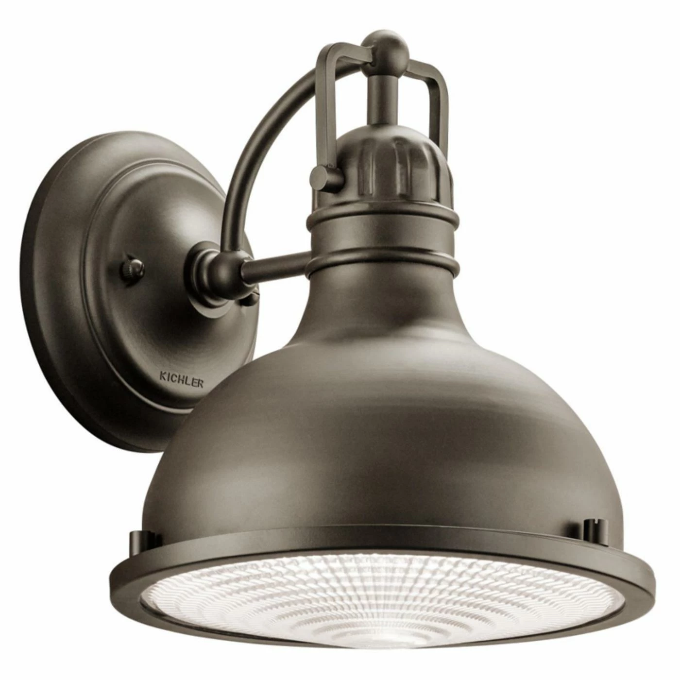 Create an industrial welcome to your home by lighting with this Kichler Hatteras Bay 49065 Outdoor Wall Sconce. This brass fixture features an industrial shade design, olde bronze finish, and Fresnel glass lens. This outdoor wall sconce is available in select lamping options. Your choice dictates whether bulbs are included or not.