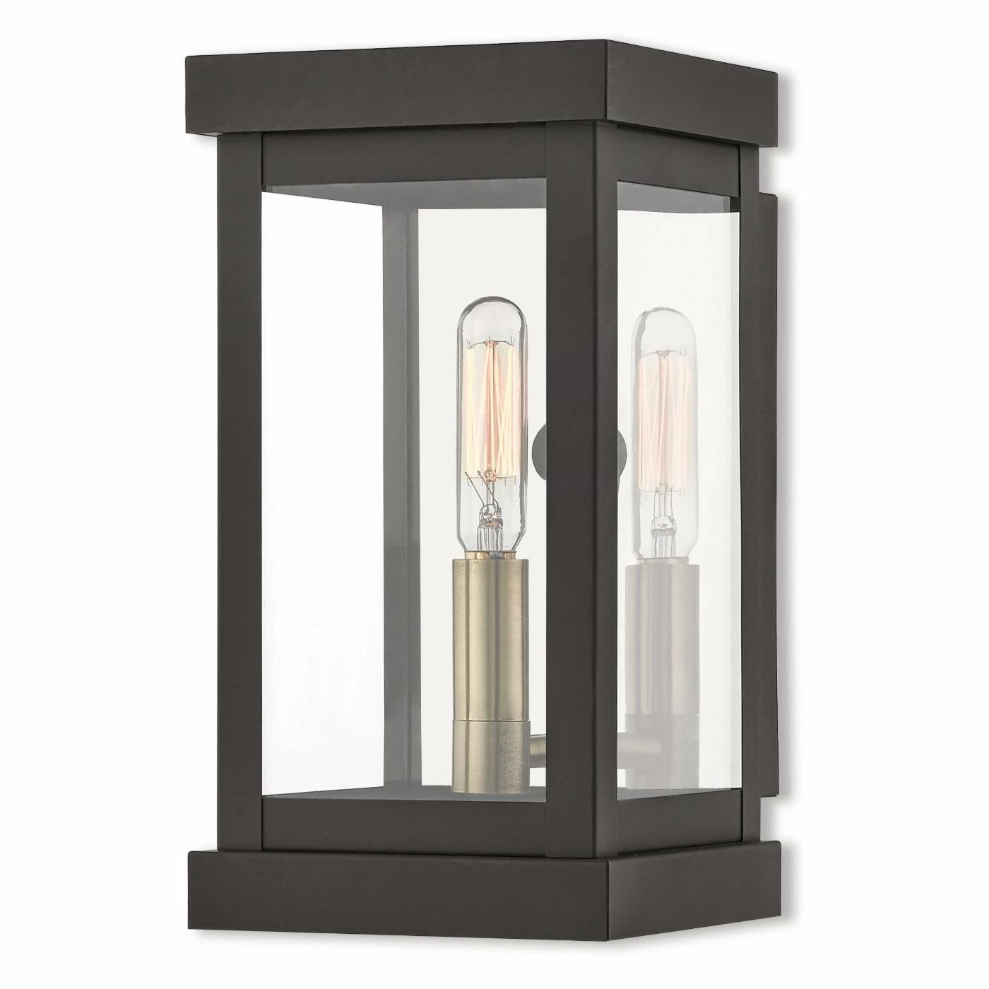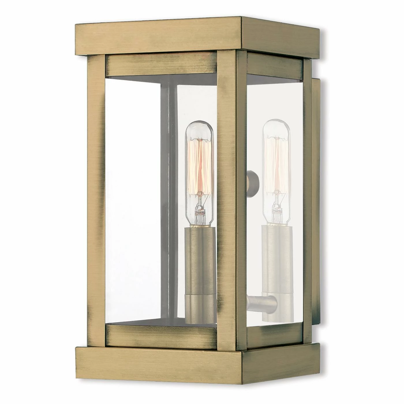 Add transitional style to your setting with the Livex Lighting Hopewell 20701 1 Light Outdoor Wall Lantern, crafted from solid brass. This outdoor fixture features a clear glass shade and is suitable for hanging on your porch, garage, or any outdoor area of your home.