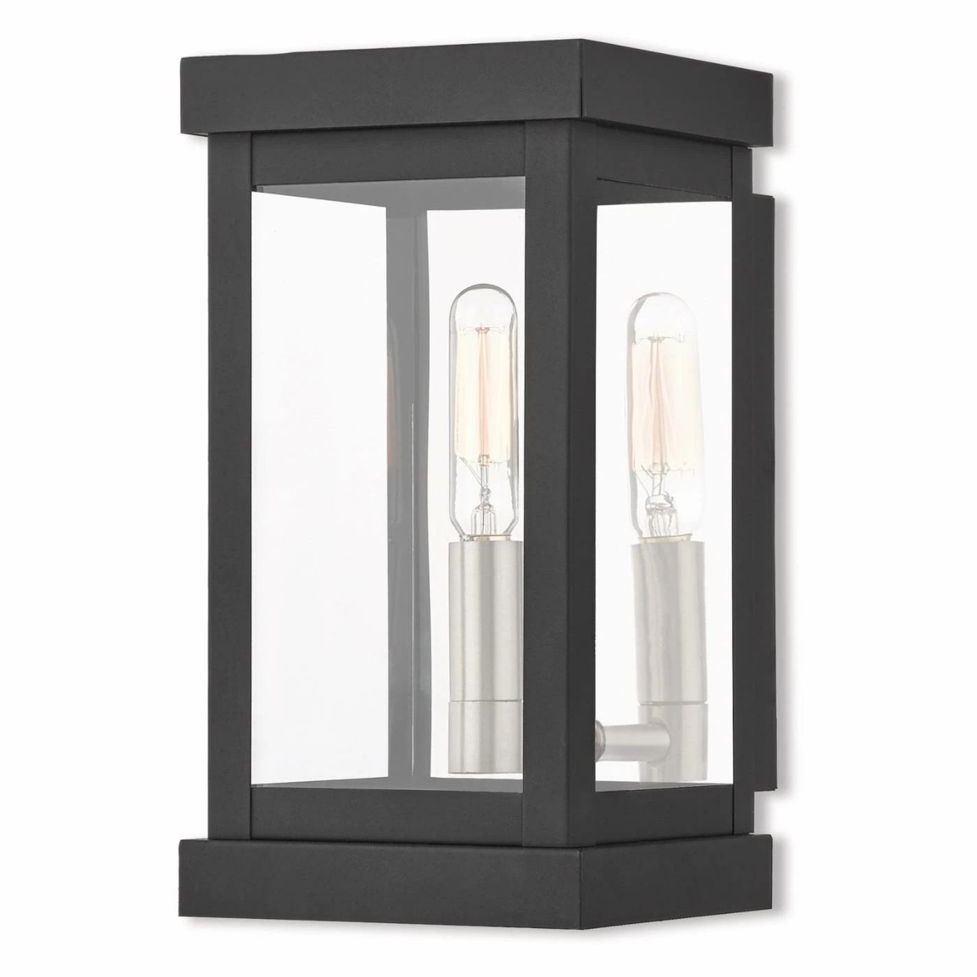 Enjoy timeless style with the Livex Lighting Hopewell 20701 Outdoor Wall Sconce. The black finish offers sleek framing for the glass panes and accentuates the clean lines and sharp edges of the sconce. The brass fixture is reminiscent of colonial design and looks best hosting a vintage filament bulb.
