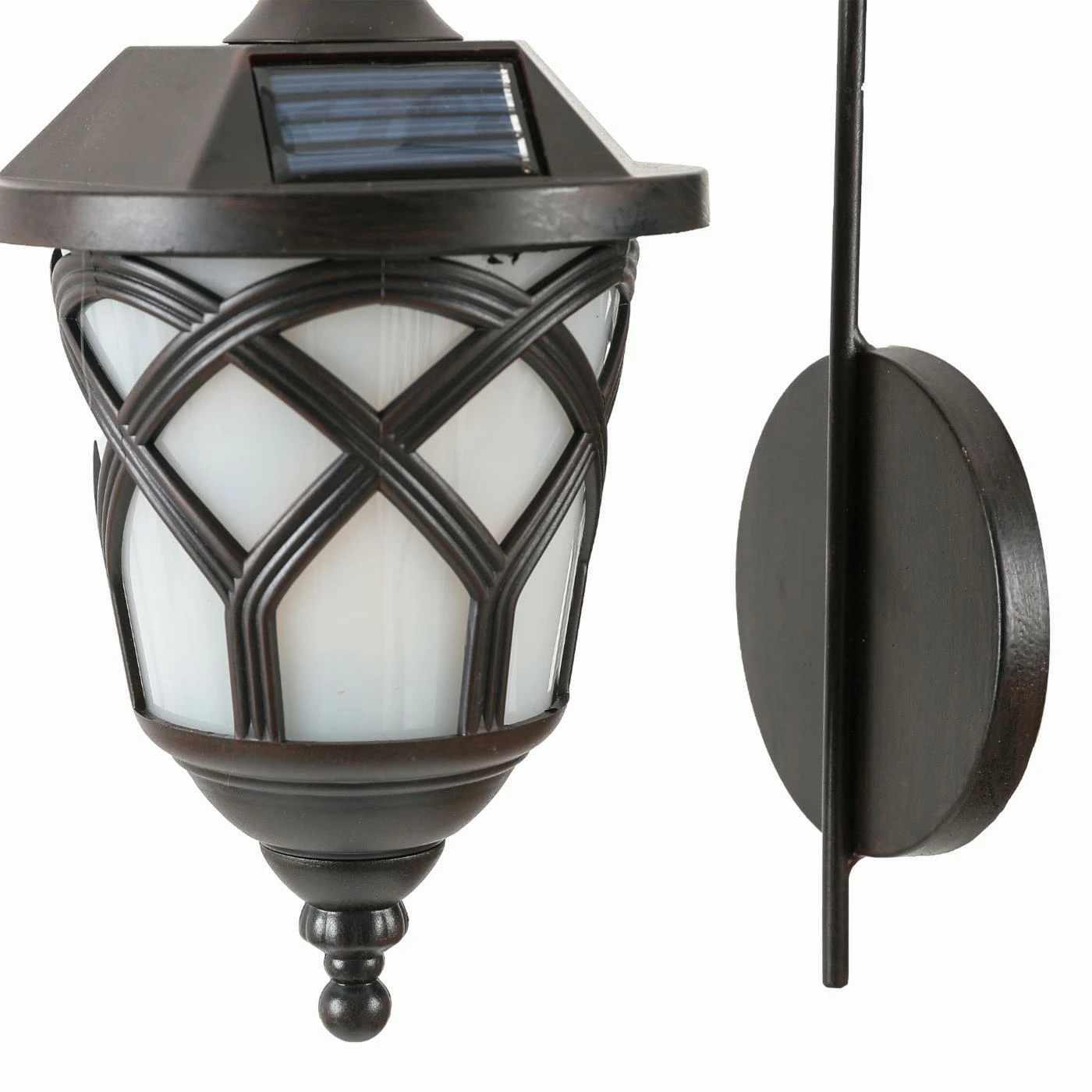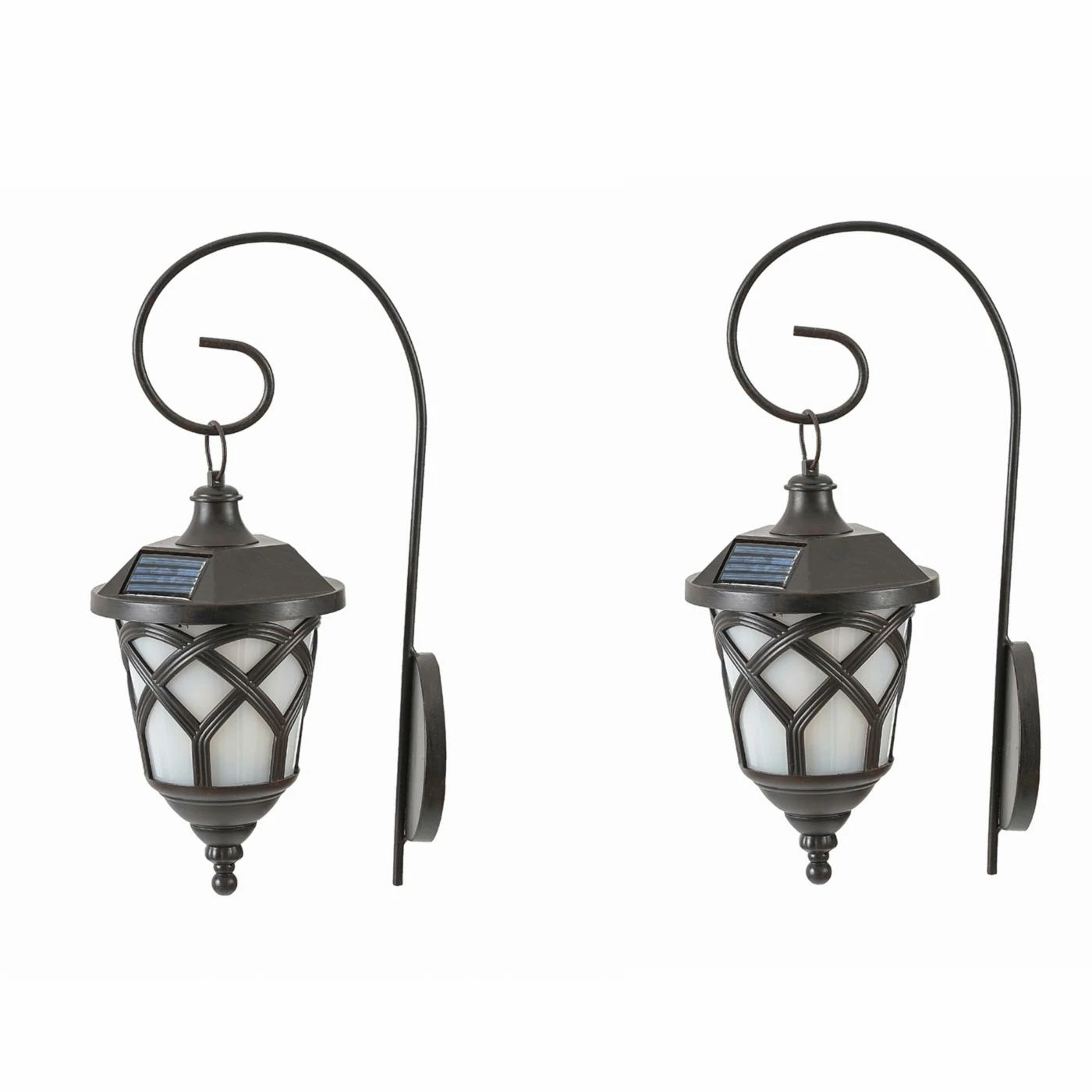 Up your curb appeal by lighting with this eco-friendly LuxenHome Solar Sconces – Set of 2. The traditional iron sconces features scrolled arms, decorative overlays, and offer warm, bright light. The solar lights charge during the day and automatically turn on at night for up to eight hours of light.