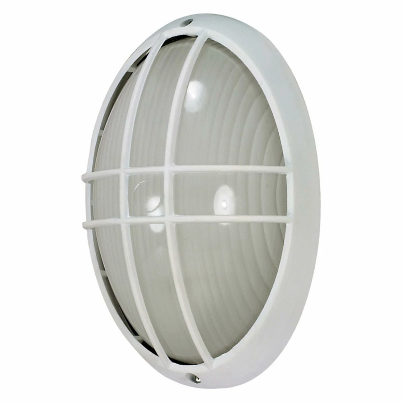 Install the Nuvo 13 in. Large Oval Cage Light to illuminate your exterior in sleek style. This simple, oval cage light suits many architectural styles and comes in your choice of available finishes to match your exterior. A frosted glass diffuser covers the single lamp and softens its glow, ensuring that the fixture provides glare-free, pleasant illumination. The die-cast cage light is CUL wet location rated for safety in exposed areas.