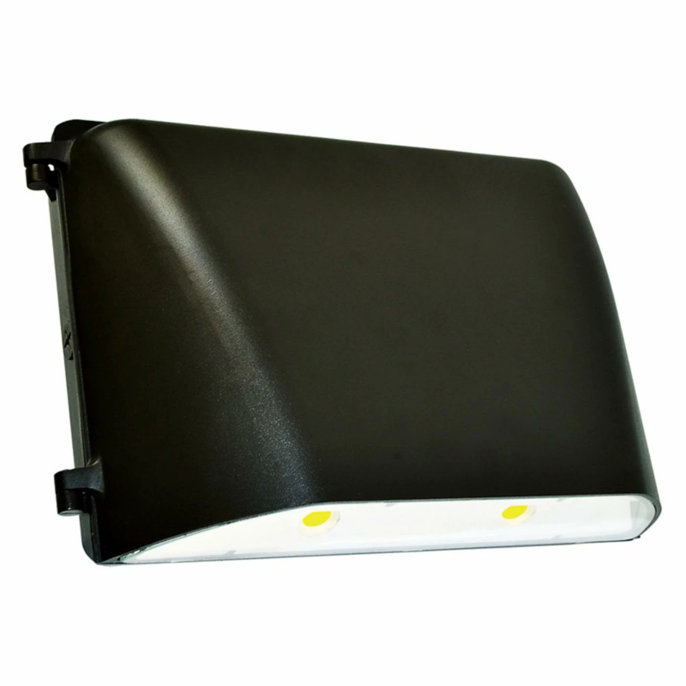 Sleek and understated, the Nuvo Large LED Wall Pack Light‘s unobtrusive design with bronze-colored finish will shed light in just the right spots along your wall. The aluminum construction is durable and is UL listed for wet conditions. Hardwire this light to install it and enjoy the wattage you choose from the available options. Bulbs included.
