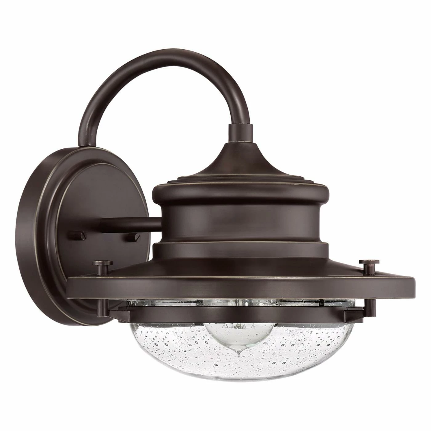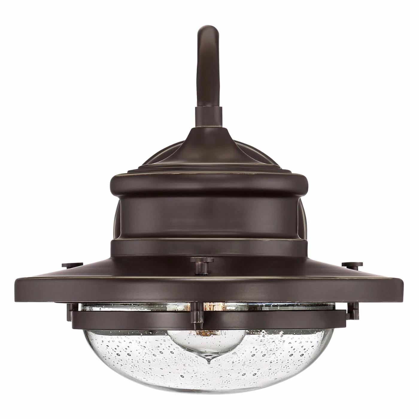 Flank your garage or front door by mounting the Quoizel Waterville WTE8411WT Outdoor Wall Lantern. This inviting lantern offers a warm finish and a seeded glass shade.