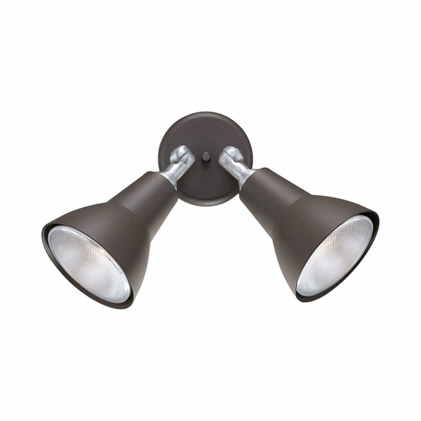 Shine a spot light on two different areas of your yard with the Thomas Lighting Outdoor Essentials Outdoor Wall Spotlight. The rustproof aluminum wall light features two heads with diffusing glass lenses.