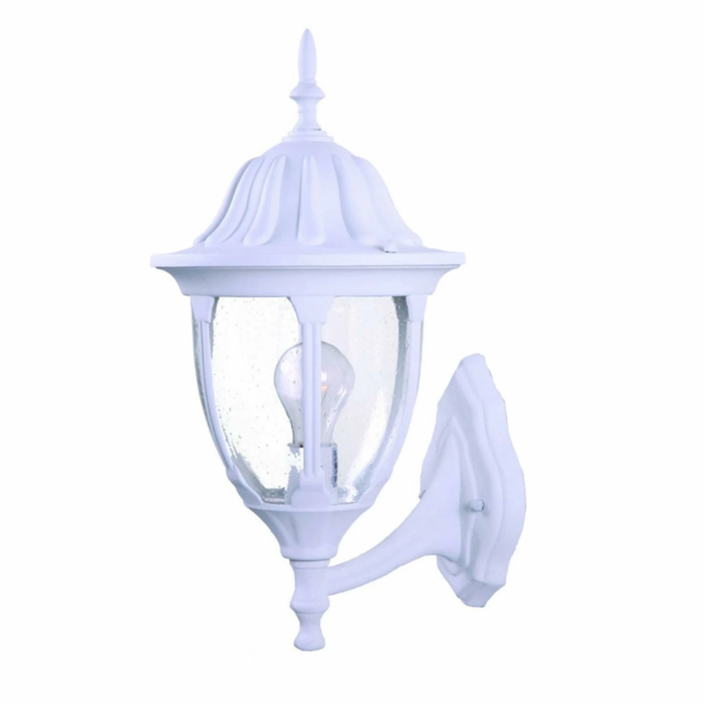 Clear seeded glass on the Acclaim Lighting Suffolk 9 in. Outdoor Wall Mount Light casts a mottled glow and will enhance your home’s exterior with its timeless lantern shape attached to a curved arm. This durable and corrosion-resistant outdoor light fixture is available in your preferred finish to help it blend seamlessly with your chosen style.