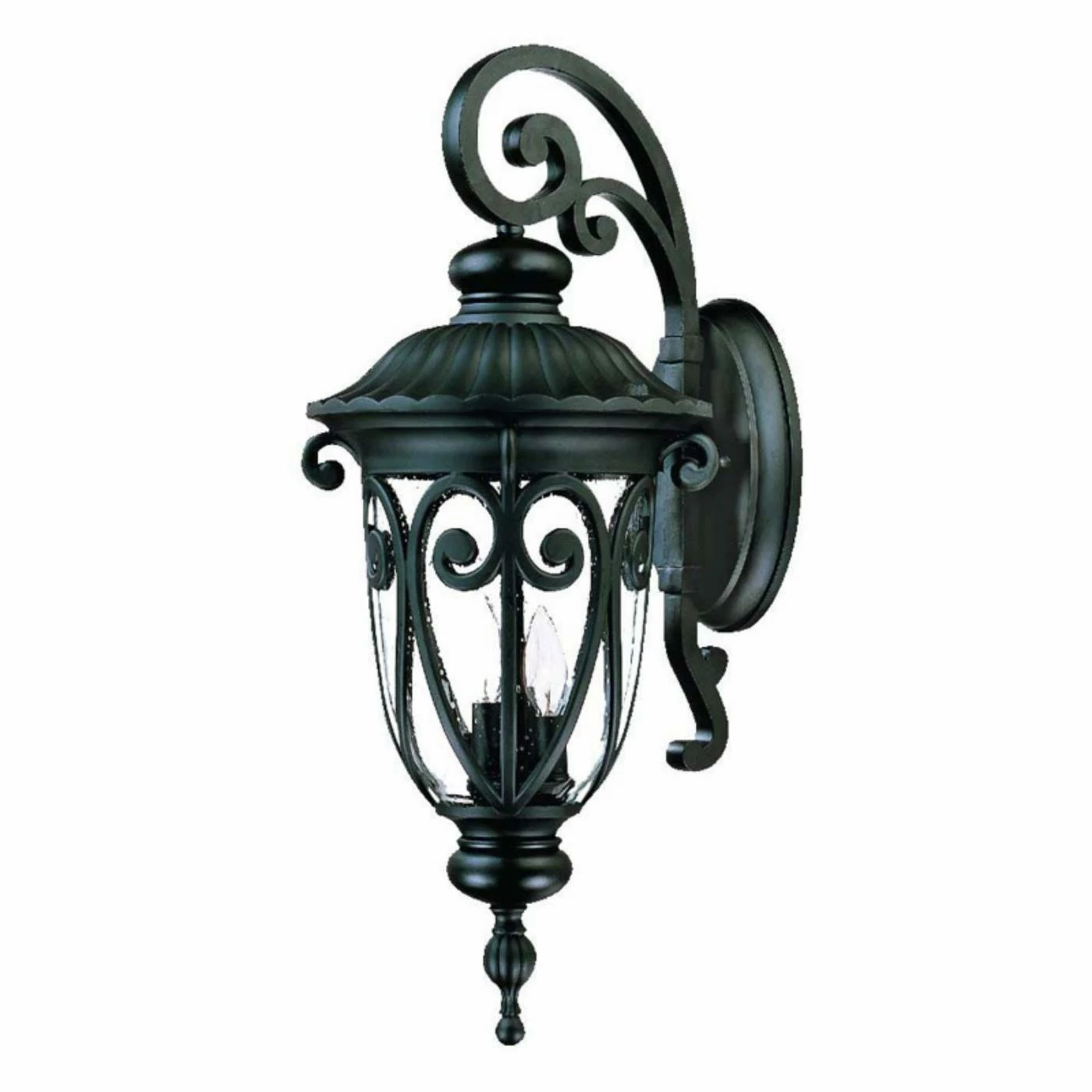 Create a timeless look for your home with the Acclaim Lighting Naples Outdoor 11.25 in. 3 Light Wall Mount Light Fixture featured in a lantern shape with decorative accents. This metal fixture comes in finish options, and the clear seeded-glass shade allows the light from the trio of candelabra bulbs to brightly shine through.
