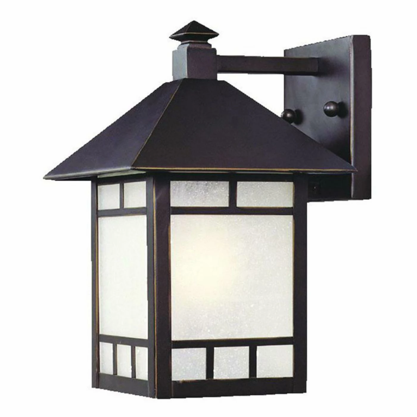 Powder-coated steel gives this mission-inspired Acclaim Lighting Artisan 7 in. Outdoor Wall Mount Light Fixture its extreme weather resistance and style. Frosted glass panels diffuse light from this wall-mounted fixture. It requires one 100-watt bulb (not included).