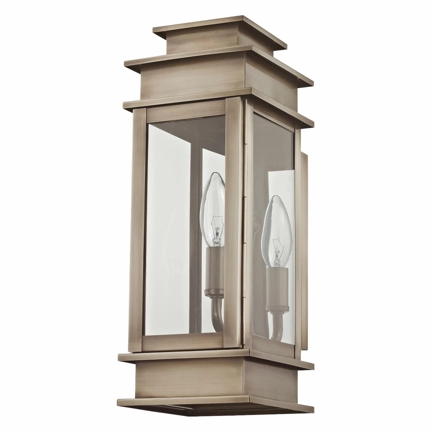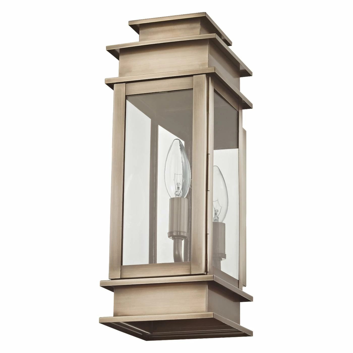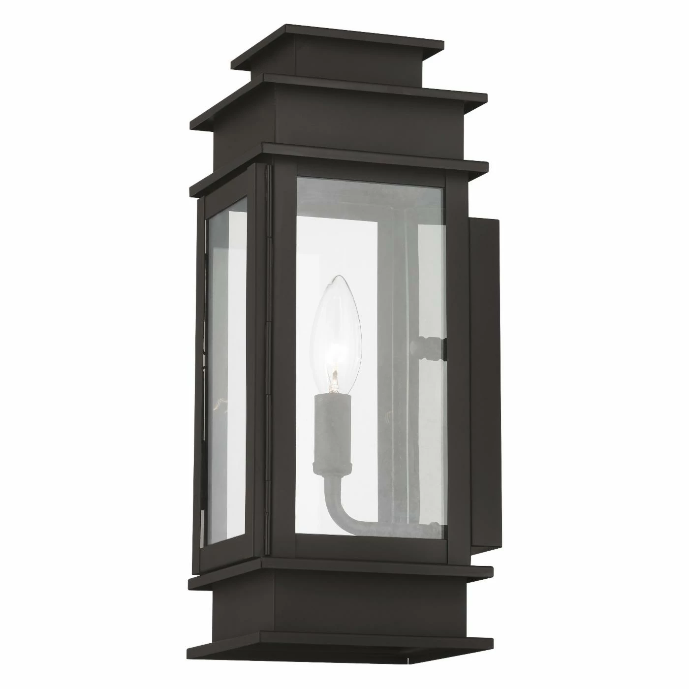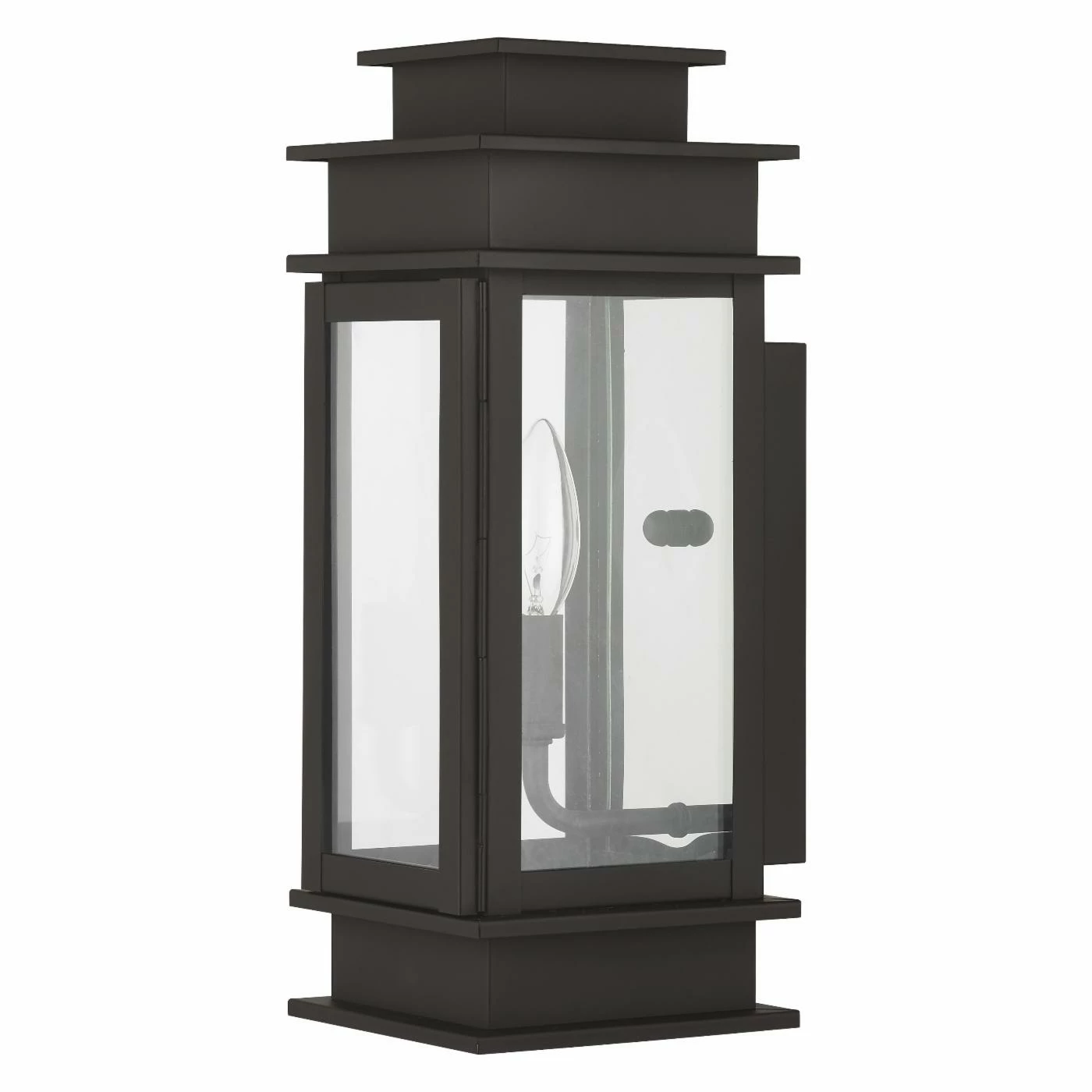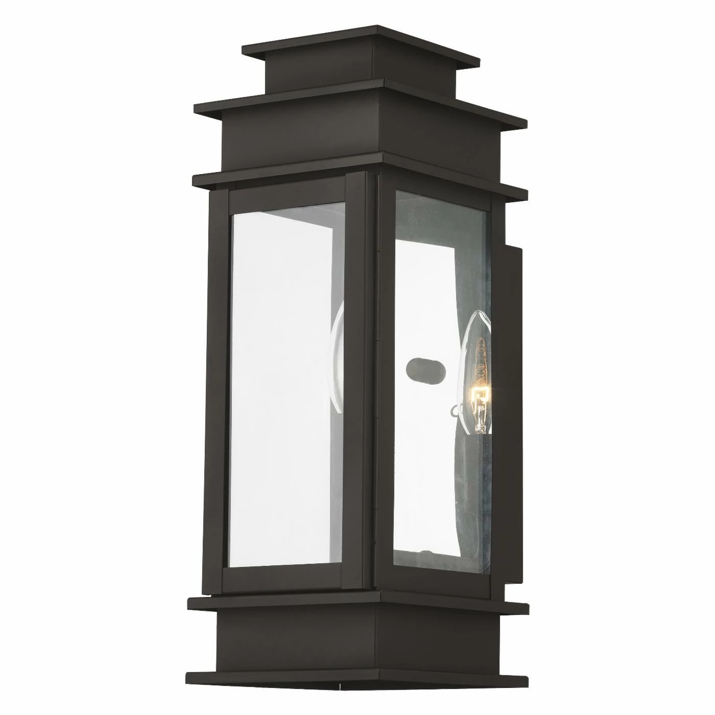 Sleek style lines bring a mission-style to the Livex Princeton 2013 Outdoor Wall Lantern 14H in.. This wall lantern features clear glass panels inside a metal framework.