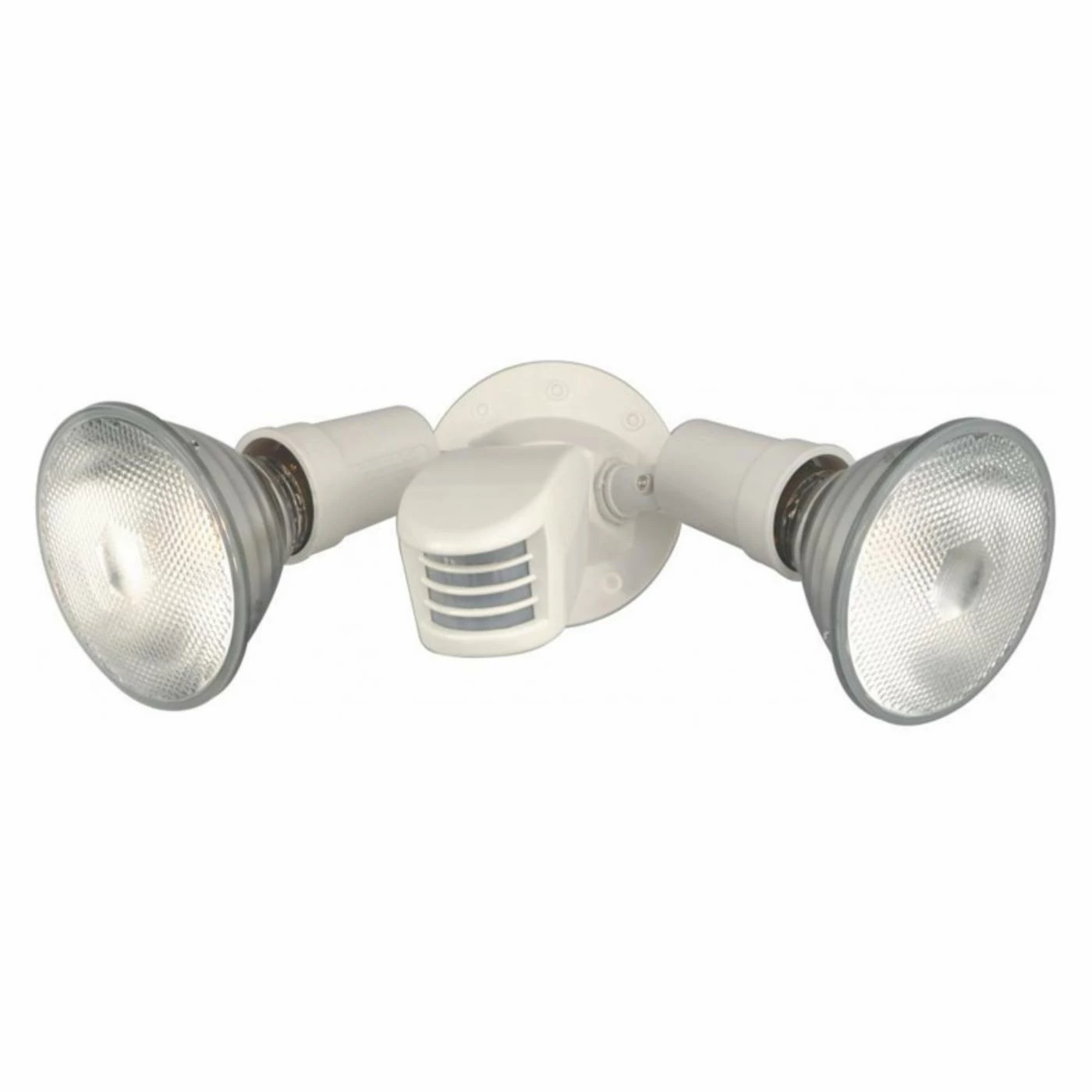 Save energy without sacrificing safety by using the Nuvo Two Light 10 in. Exterior Motion Sensor Flood Light to light up your home. A motion sensor controls the operation of this double flood light, turning it on when movement is detected and off when the motion stops. The swiveling design lets you adjust the angle of the two lamps as you see fit. Made out of aluminum, the flood light is durable against wear and tear, rust, and corrosion. The wet location rating ensures that it is safe to install in unprotected areas.