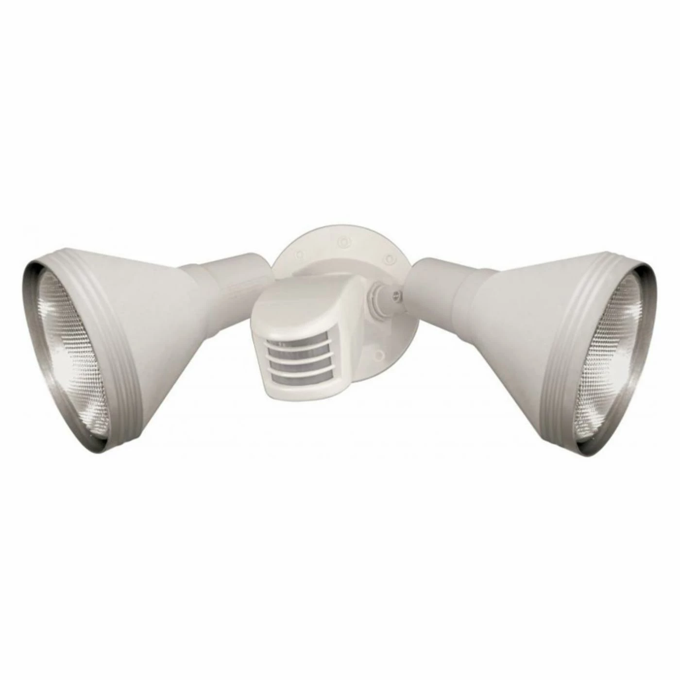 Controlled by a motion sensor, the Nuvo Two Light 14 in. Exterior Flood Light reduces energy use by turning on only when you need it. The safety light features two lamps that swivel, so you can point them where illumination is most required. Manufactured out of aluminum, the exterior flood light is resistant to rust and corrosion and is CUL wet location rated for use in open areas.