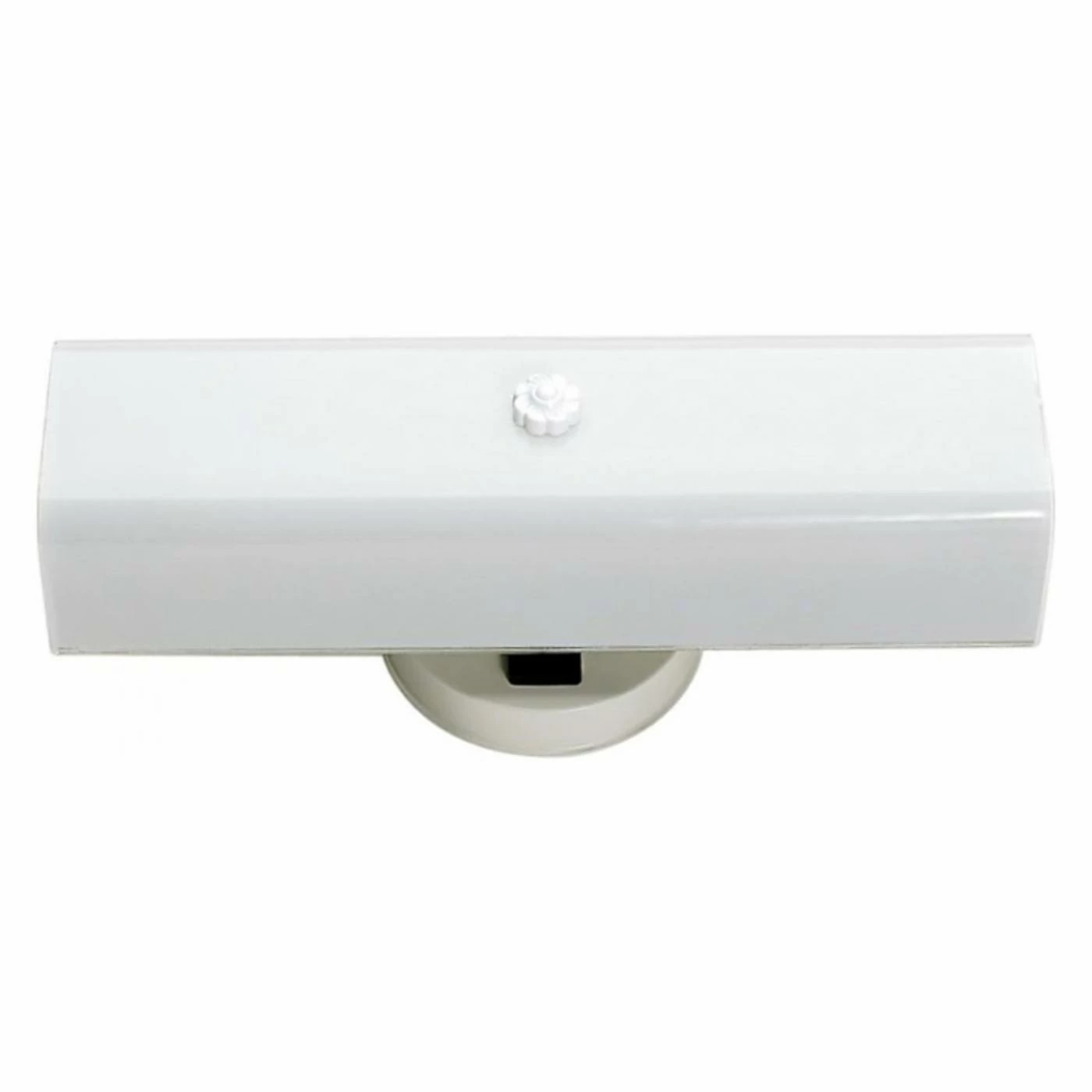 Enjoy convenience and extra light in your bathroom with the Nuvo Two Light 14 in. Wall Light. A standard 120-watt outlet is built into the design of this bar light, so you can plug in your hair dryer, electric razor, and other gadgets with ease. The bar light features a white glass shade that diffuses the illumination generated by the two lamps, eliminating glare around the sink area. This fixture is damp location rated for safe operation in humid indoor and covered outdoor environments.