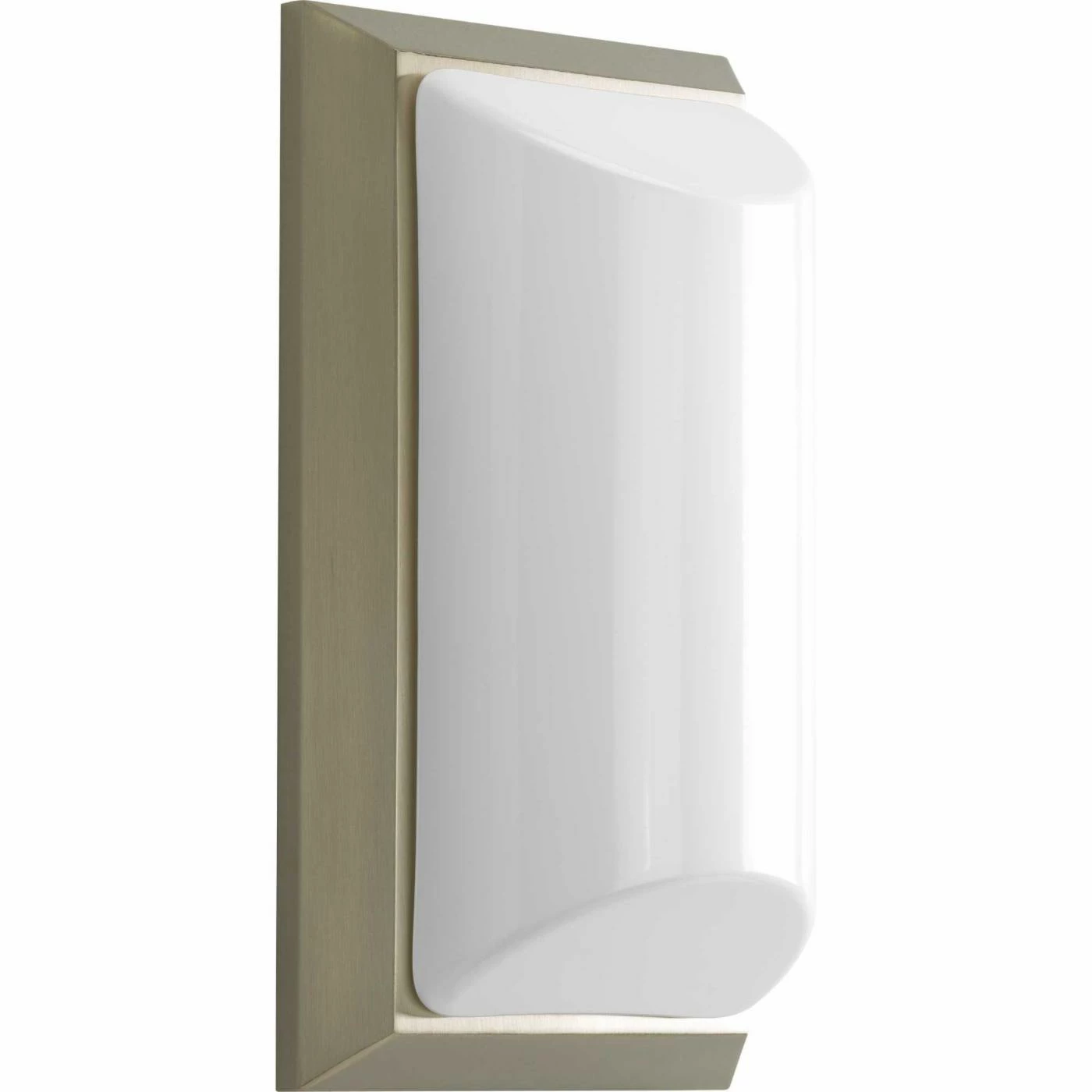 Light the way with the Progress Lighting Shelton One-Light P5790-09 Outdoor Sconce. This lighting fixture with a modern style features a die-cast aluminum frame with a brushed nickel finish. The light shade is made from acrylic and features tapered ends, and diffuses soft light. Best of all, this piece is compliant with the American Disabilities Act requirements, so it can be installed at lower heights without fear of interfering with personal mobility devices or prosthetics. For use with a compact fluorescent bulb, sold separately.